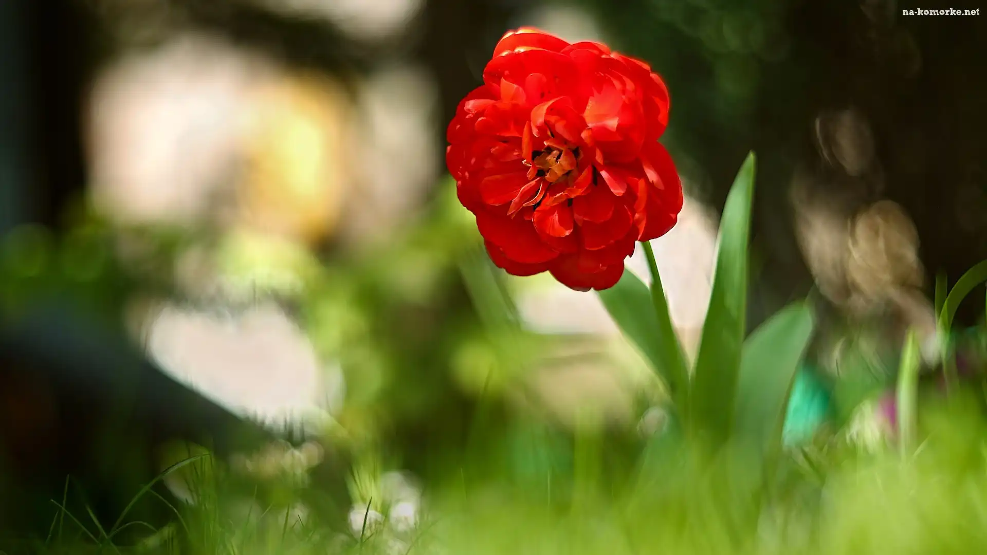 Kwiat, Czerwony, Trawa, Tulipan, Rozmycie na Komórkę