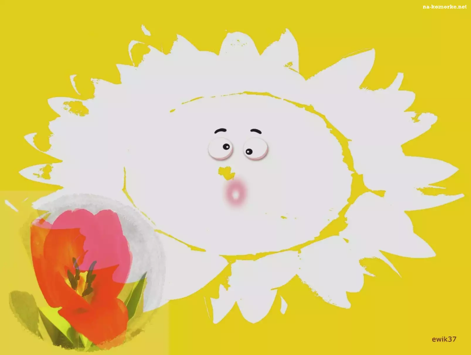 Czerwony, Słonko, Kwiat, Tło, Tulipan, Żółte na Komórkę