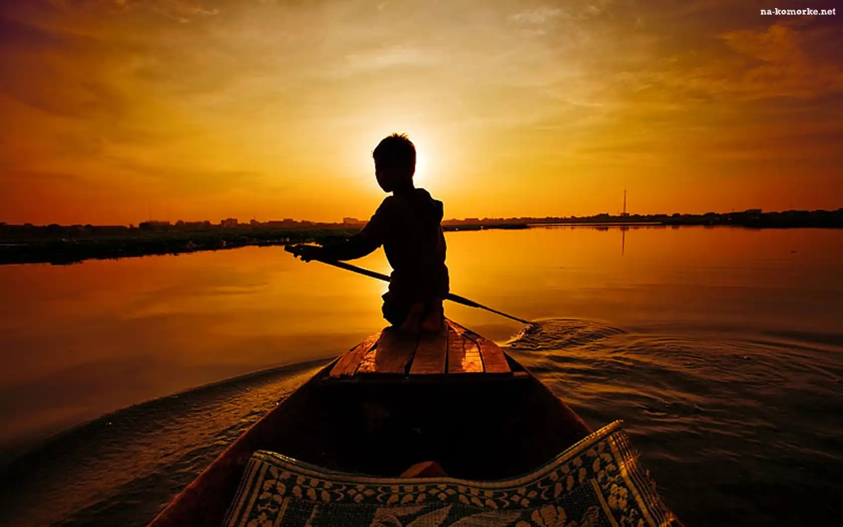 Człowiek, Słońca, Łódka, Zachód na Komórkę