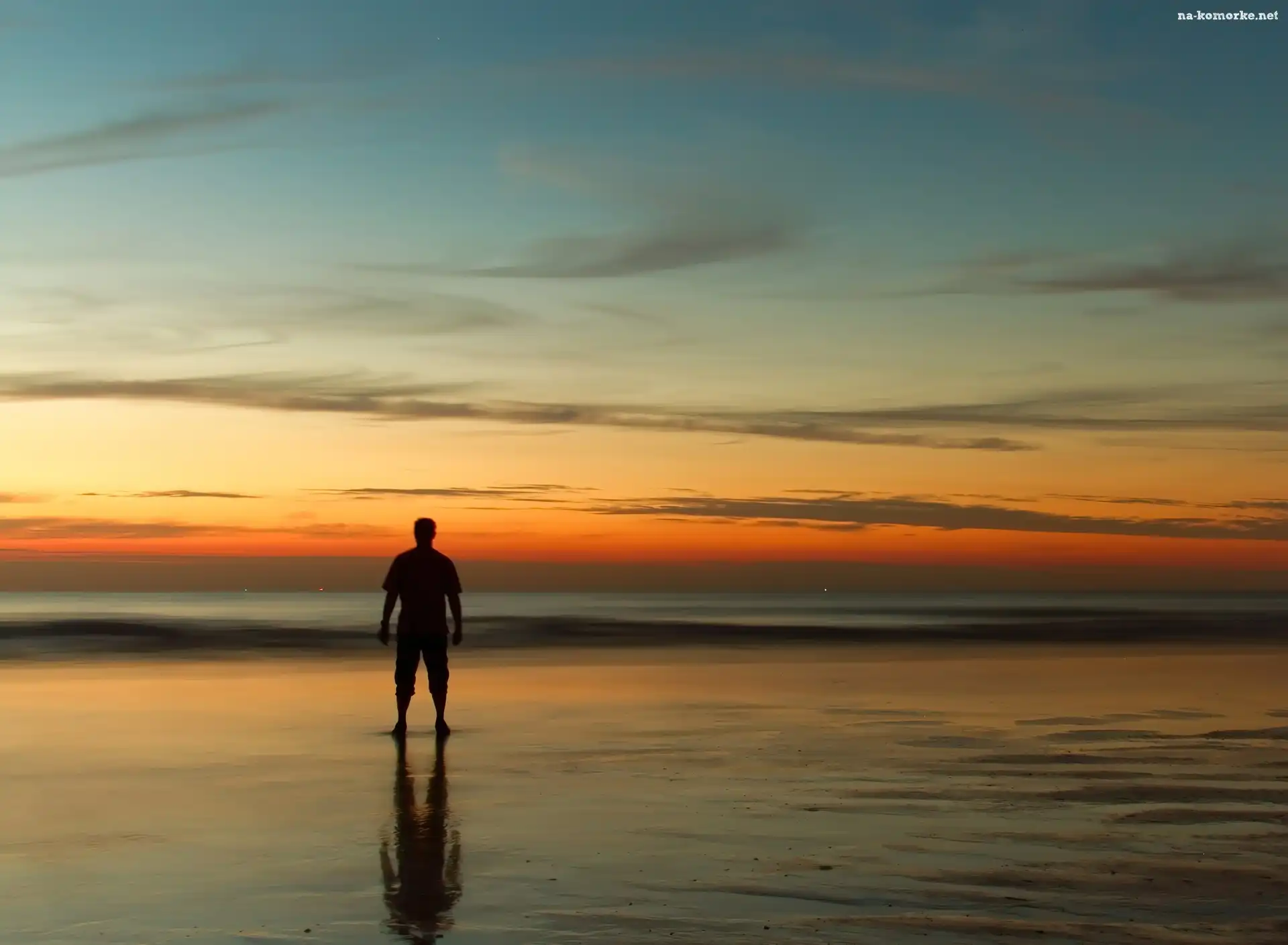 Człowiek, Morze, Plaża, Zachód, Słońca na Komórkę