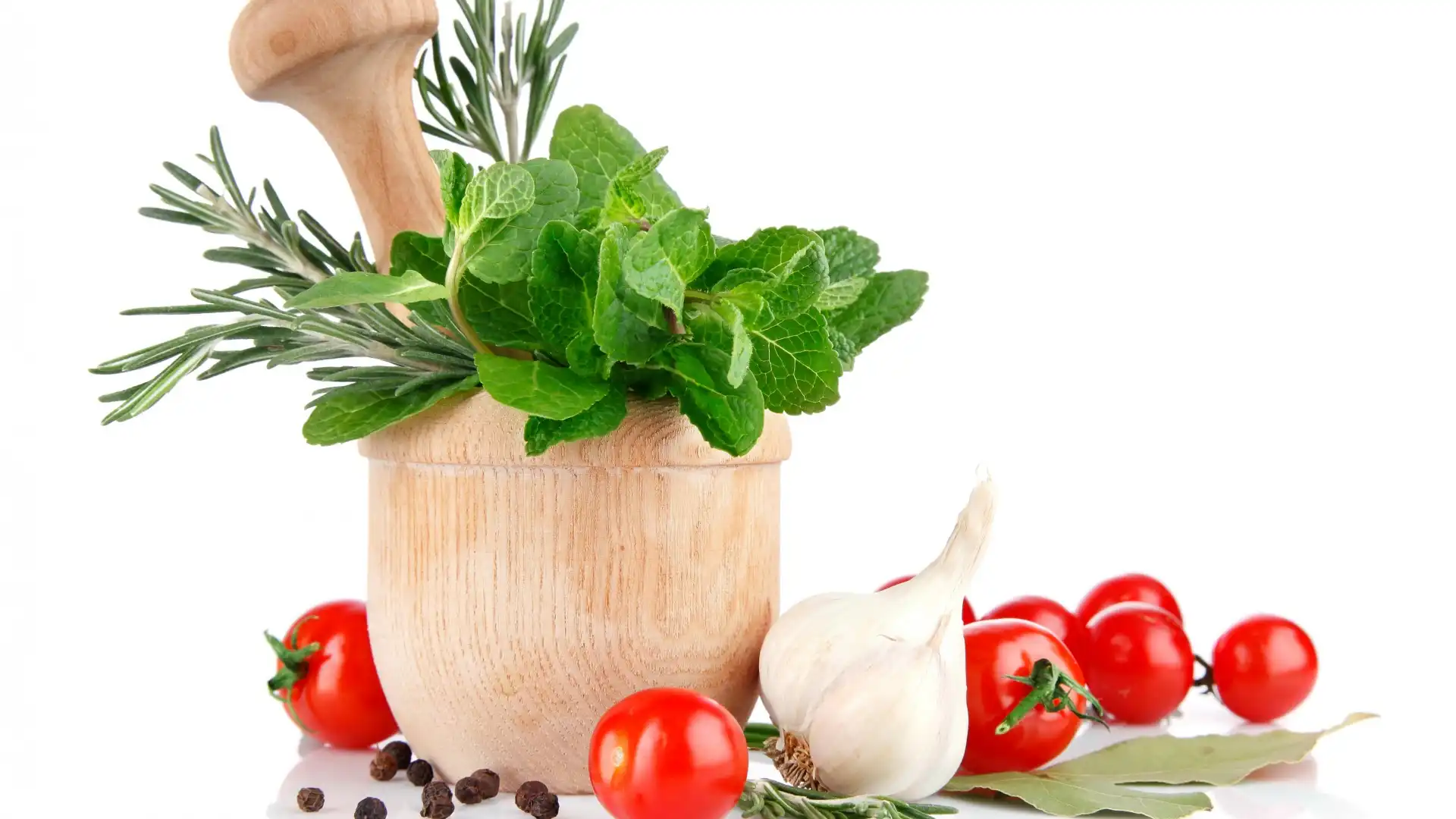 Czosnek, Przyprawy, Pomidory, Moździerz, Zioła, Drewniany na Komórkę