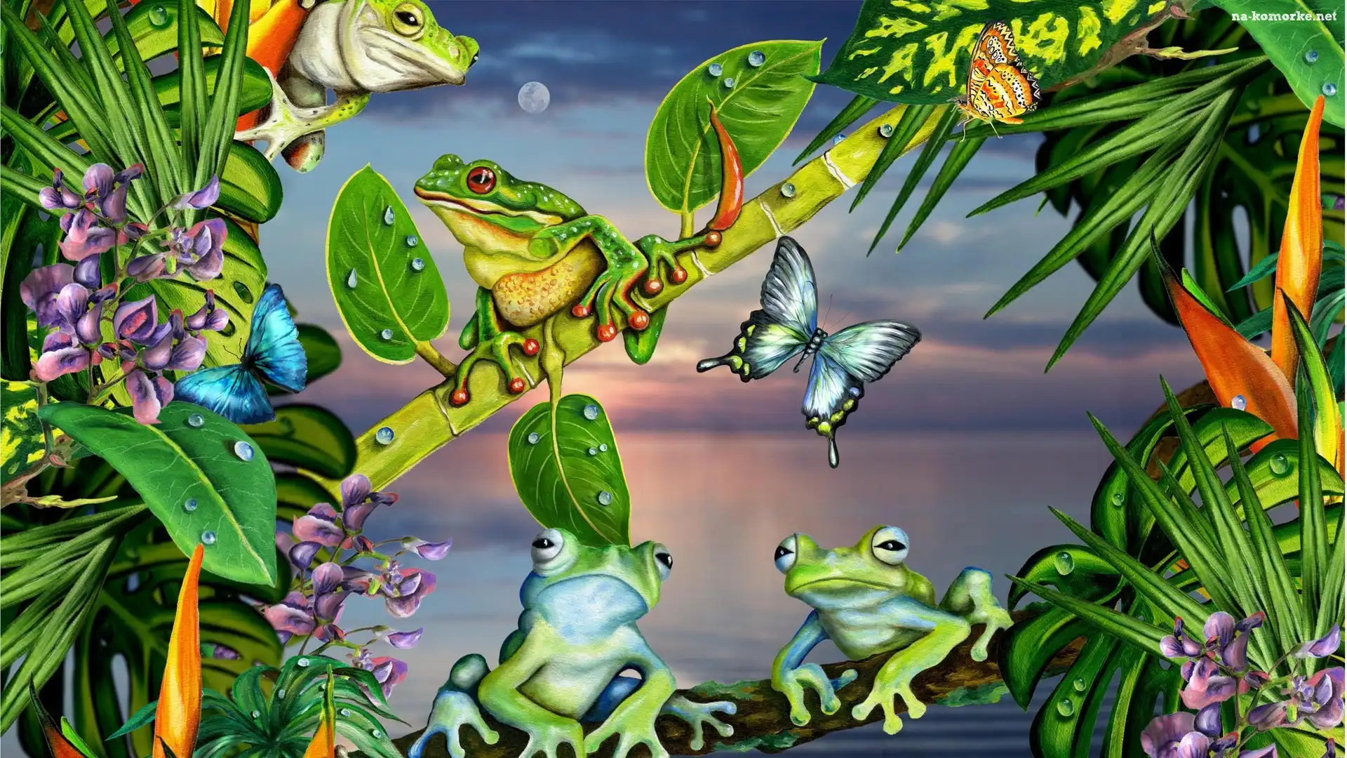 Cztery, Motyle, Żabki, Liście na Komórkę
