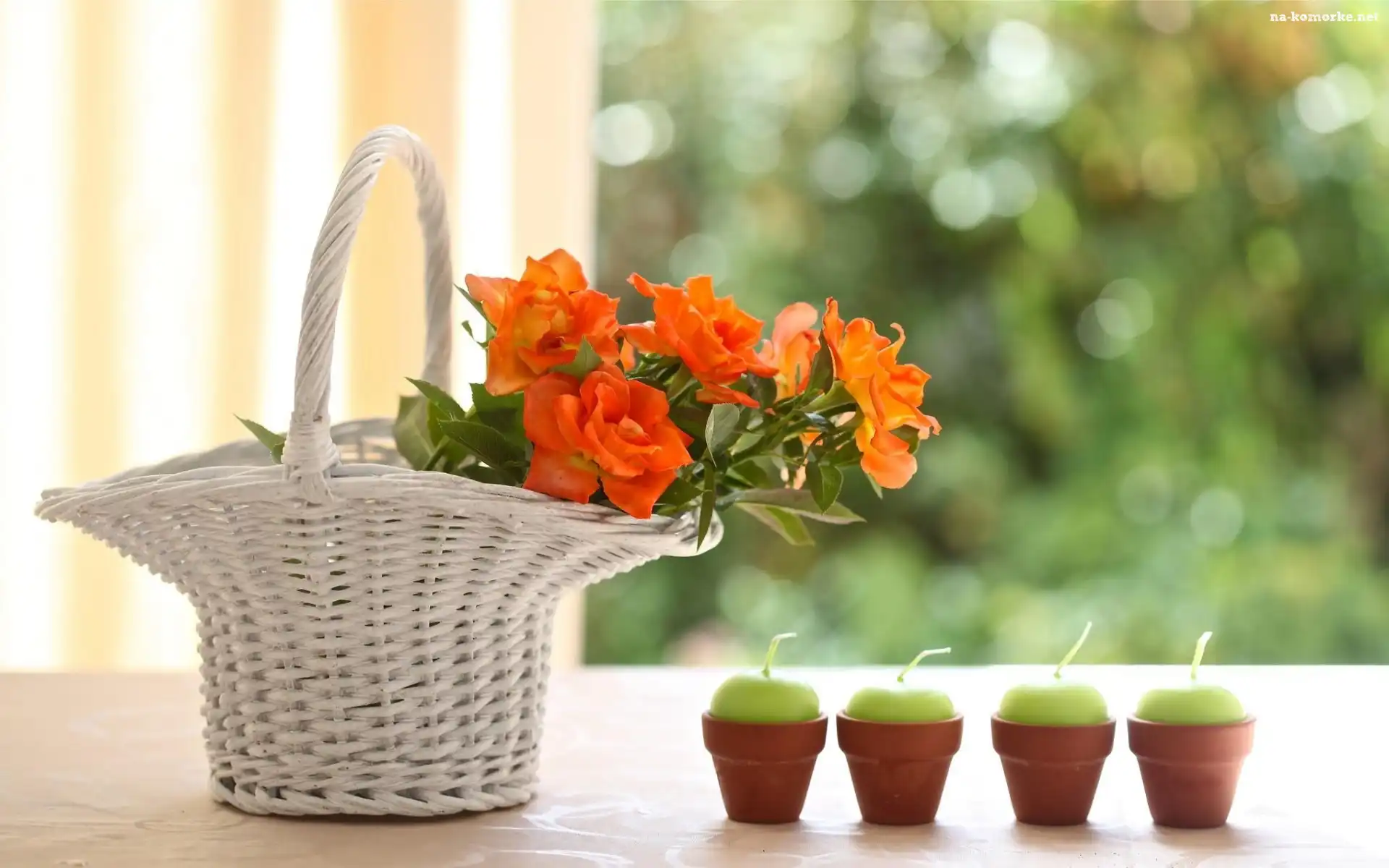 Cztery, Bukiet, Koszyczek, Kompozycja, Róż, Świeczki na Komórkę