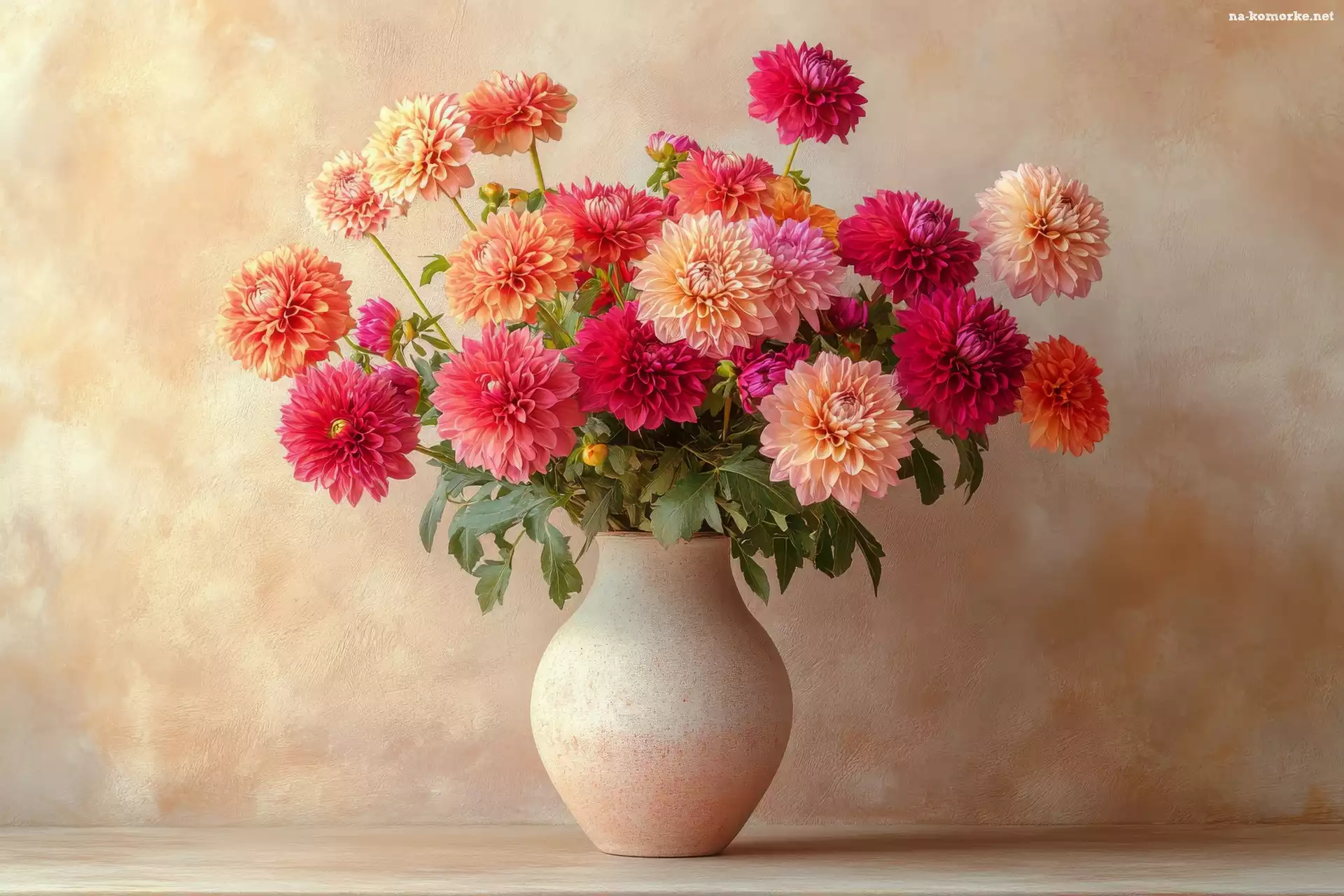 Kolorowe, Wazon, Kwiaty, Dalie na Komórkę