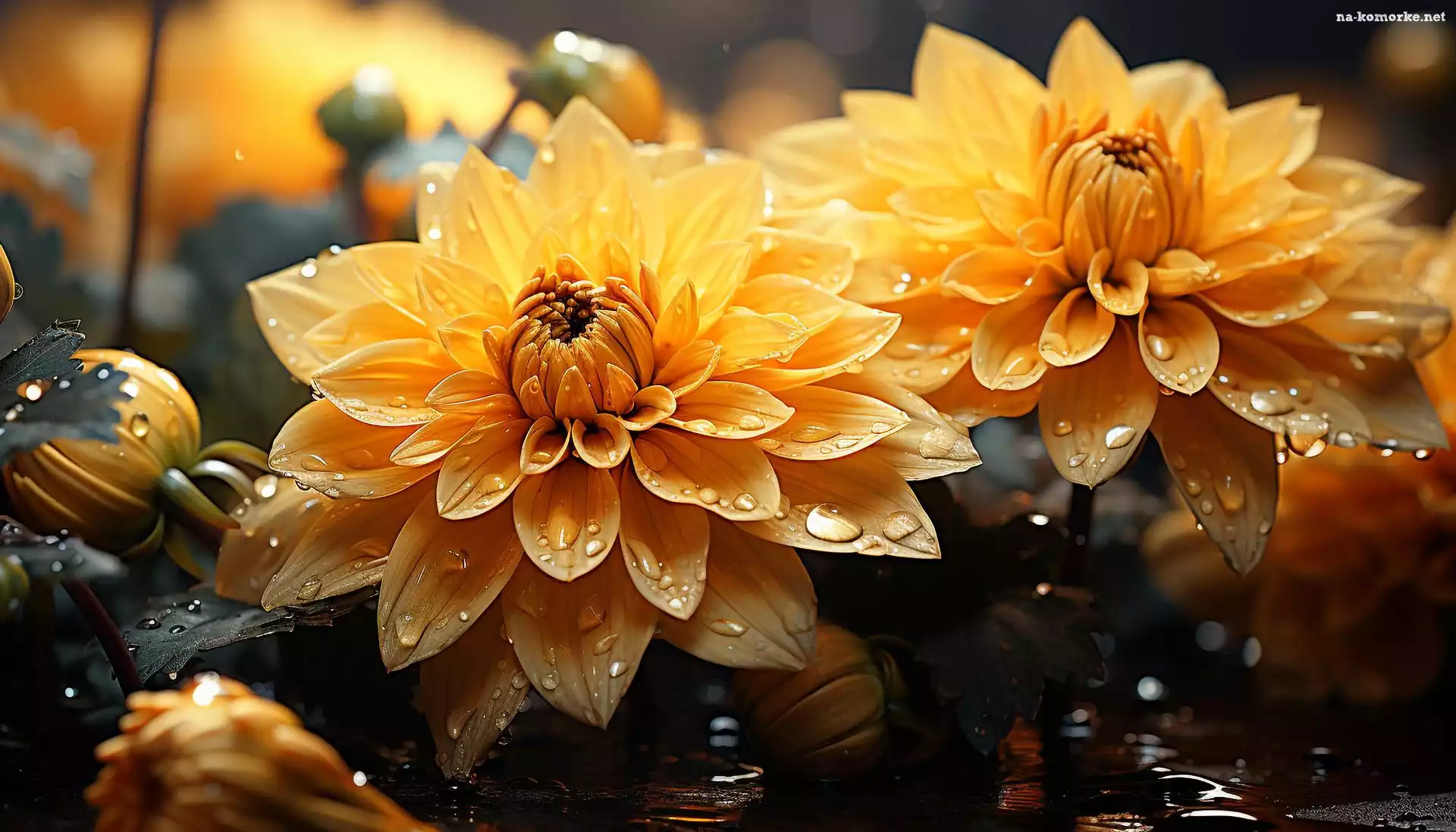 Kwiaty, Dalie, Pąki, Żółte, Krople na Komórkę