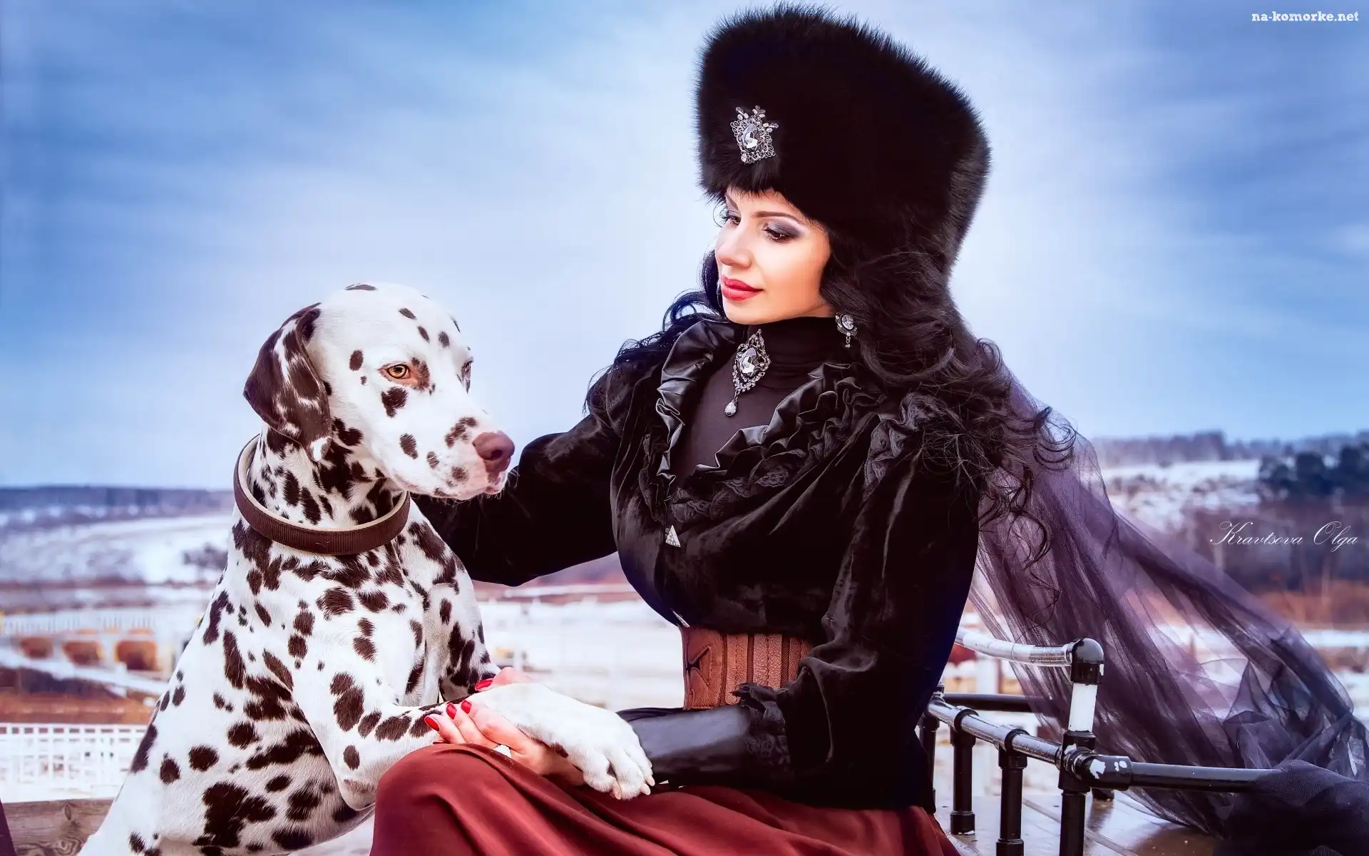 Dalmatyńczyk, Kobieta, Moda, Styl, Pies na Komórkę