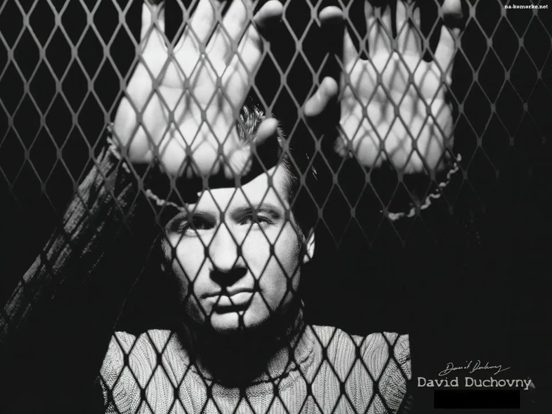 David Duchovny, twarz, ręce na Komórkę