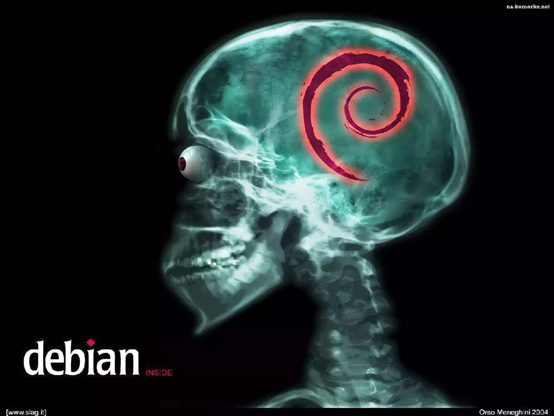 Linux Debian, rentgen, czaszka, ślimak, zawijas, muszla, grafika na Komórkę
