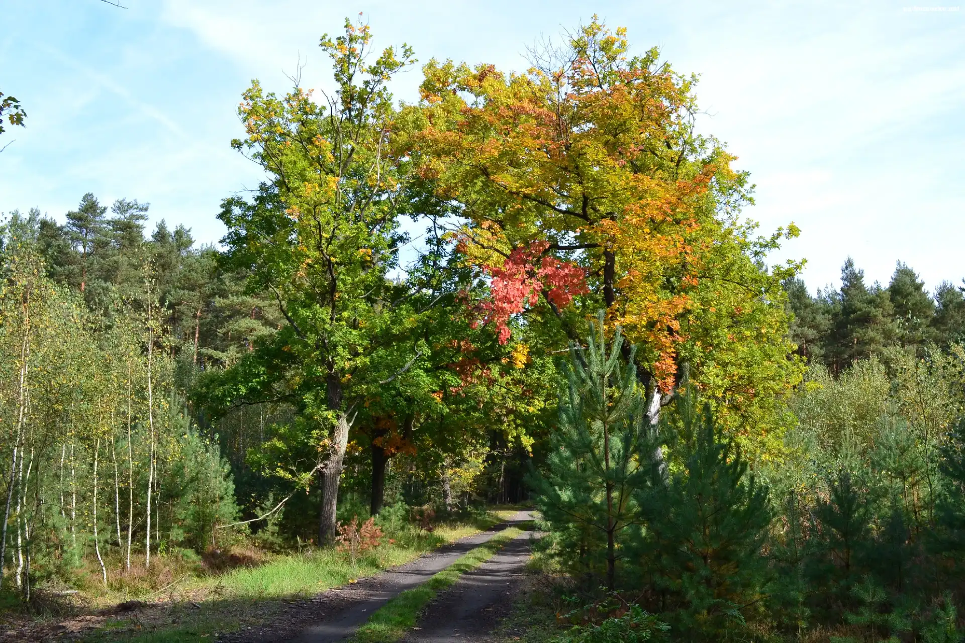 Dęby, Leśna, Droga, Kolorowe, Jesienne na Komórkę