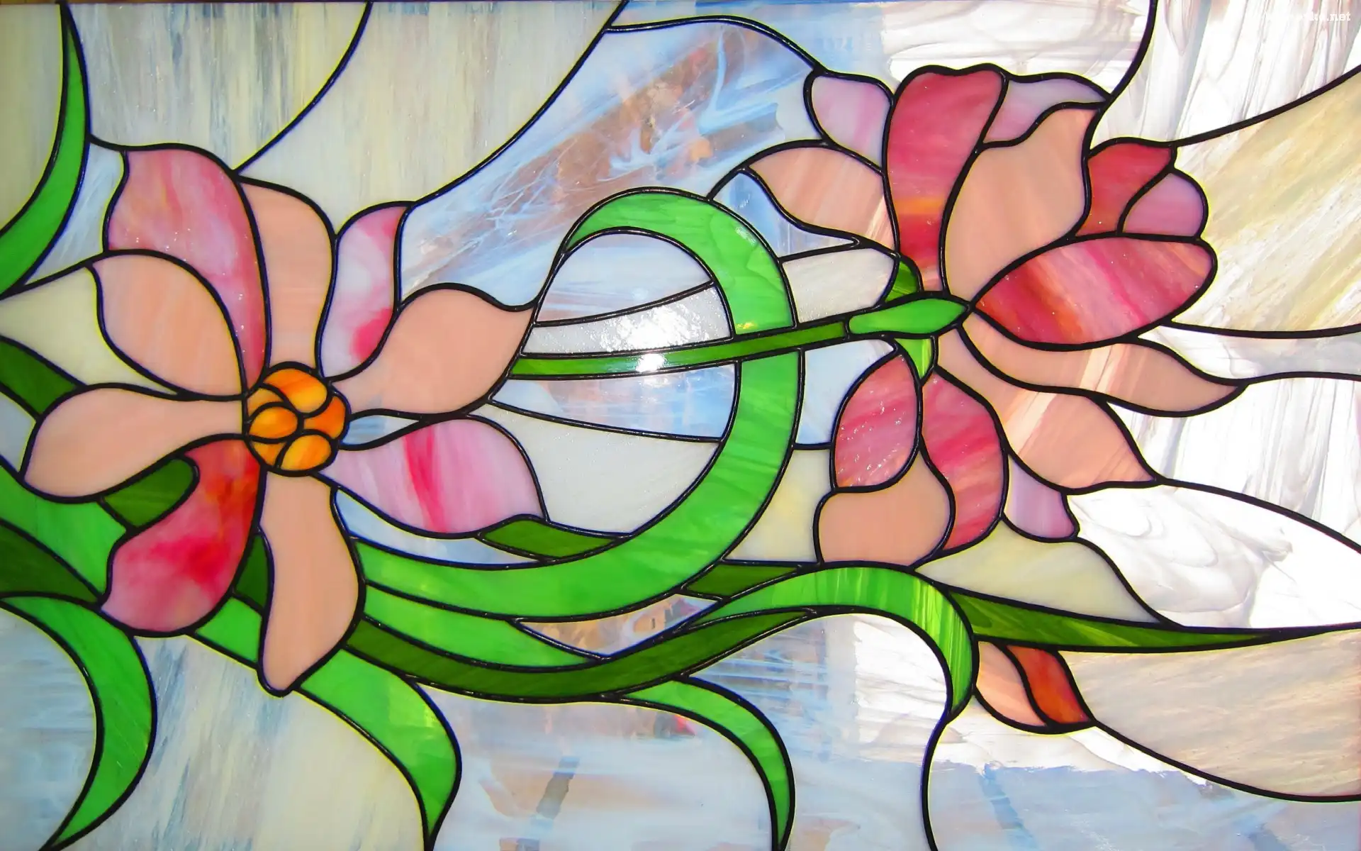 Dekoracja, Szkło, Witraż, Kwiaty, Liście na Komórkę