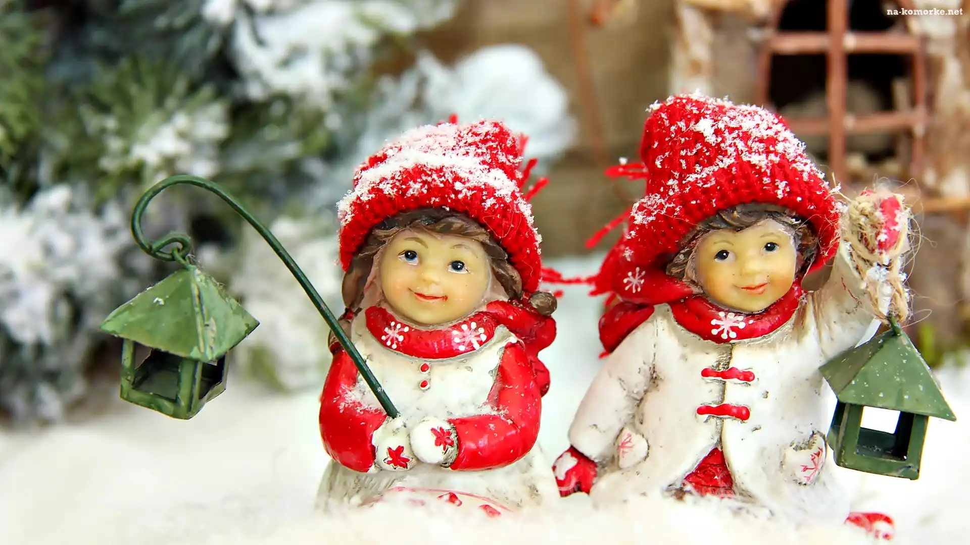 Dekoracja, Zima, Lampiony, Śnieg, Świąteczne na Komórkę