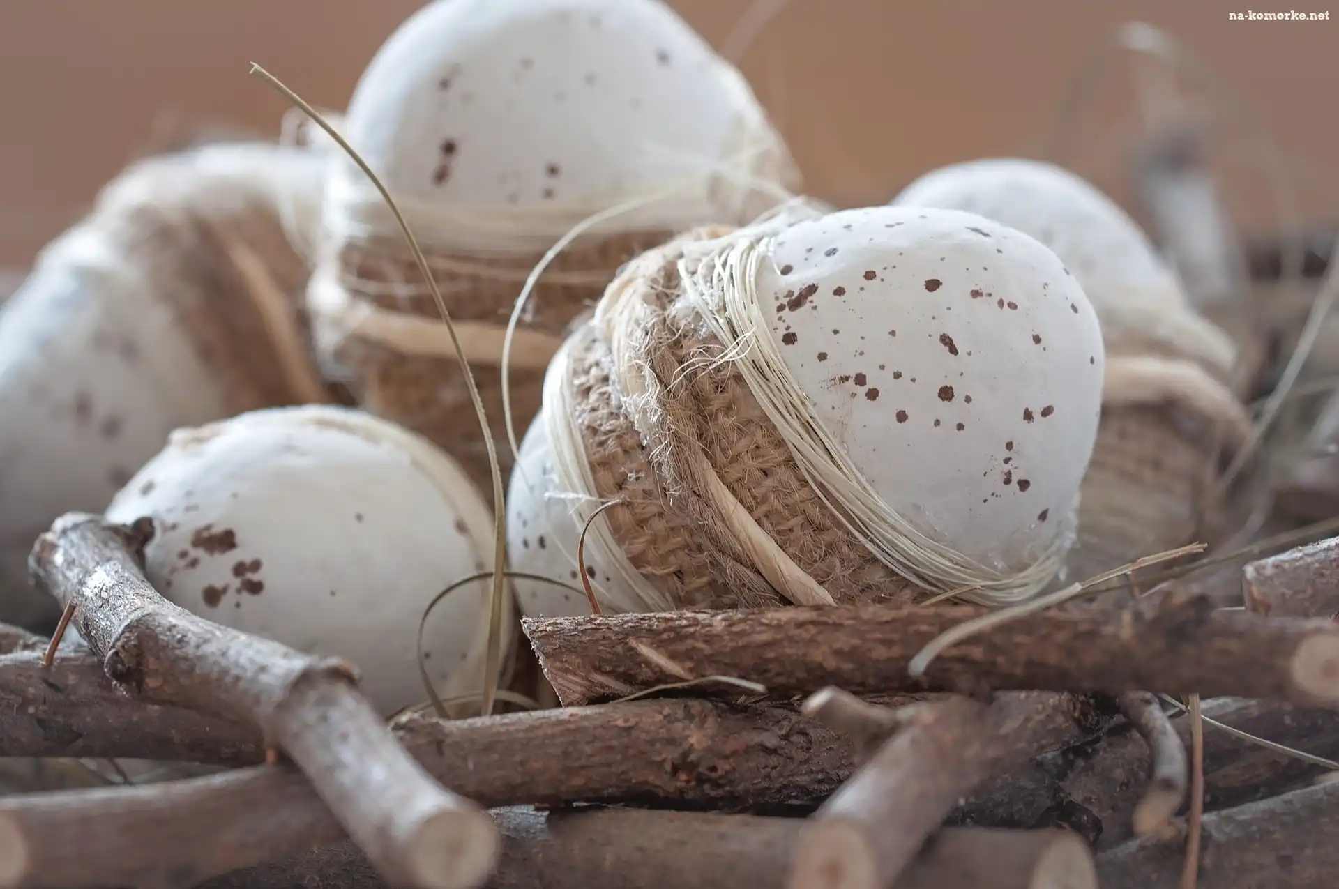 Dekoracja, Jajka, Sznurek, Patyki, Wielkanoc na Komórkę