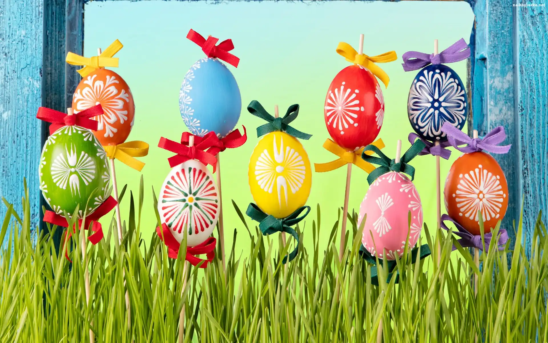 Dekoracja, Wielkanoc, Jajka, Pisanki, Trawa na Komórkę