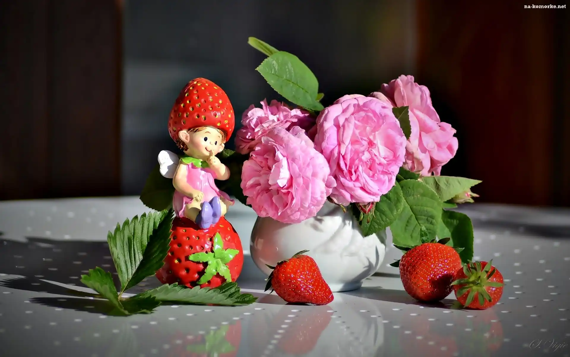Dekoracja, Truskawki, Figurka, Różowe, Róże na Komórkę