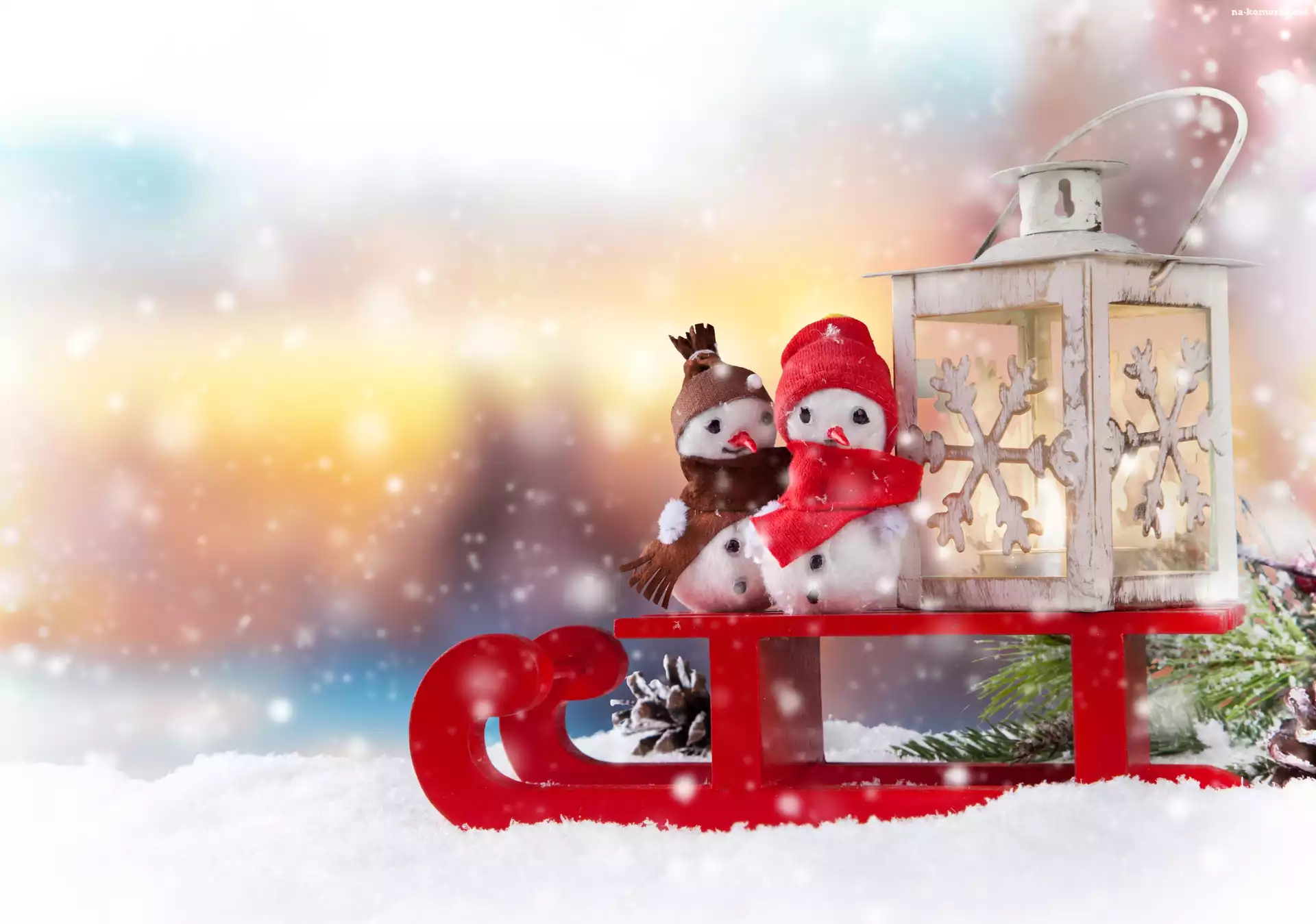 Dekoracja, Lampion, Bałwanki, Sanki, Śnieg na Komórkę