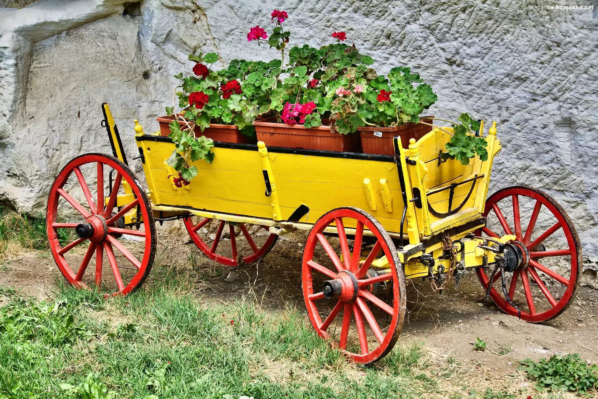 Dekoracja, Pelargonie, Wóz, Kwiaty na Komórkę