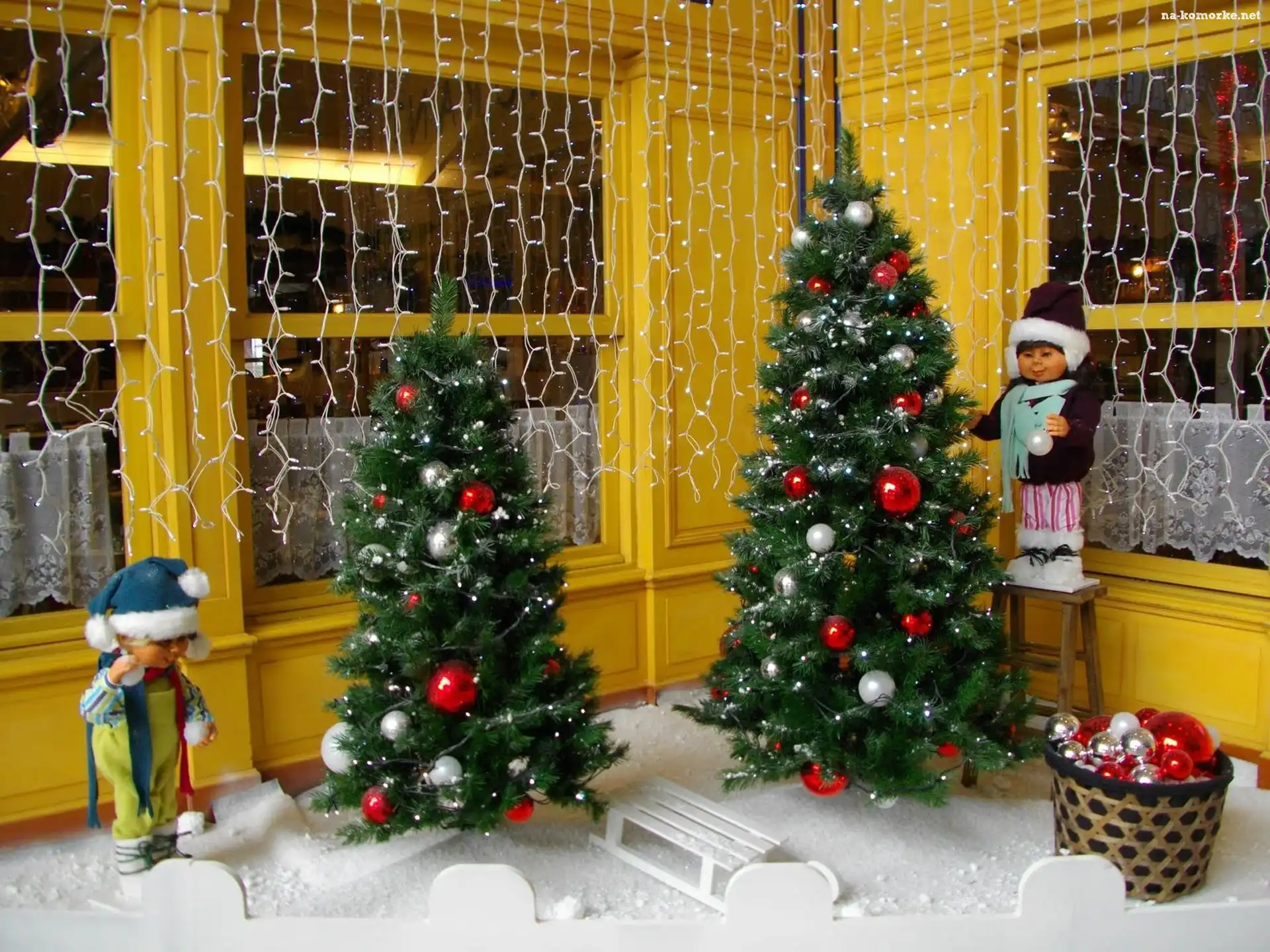 Światełka, Dwie , Choinki, Dekoracje, Święta na Komórkę