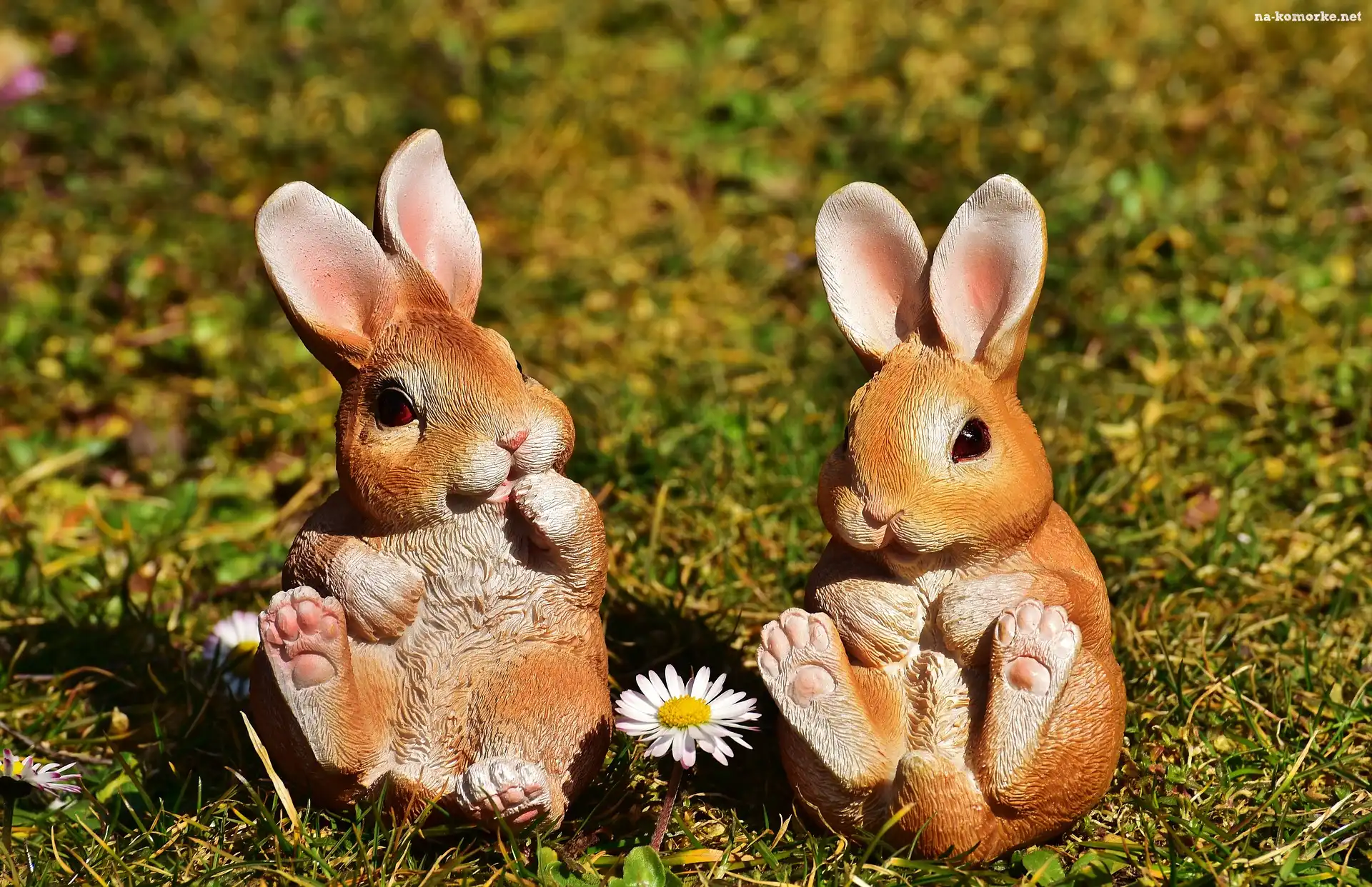 Dekoracje, Wielkanocne, Zajączki, Trawa, Stokrotka na Komórkę