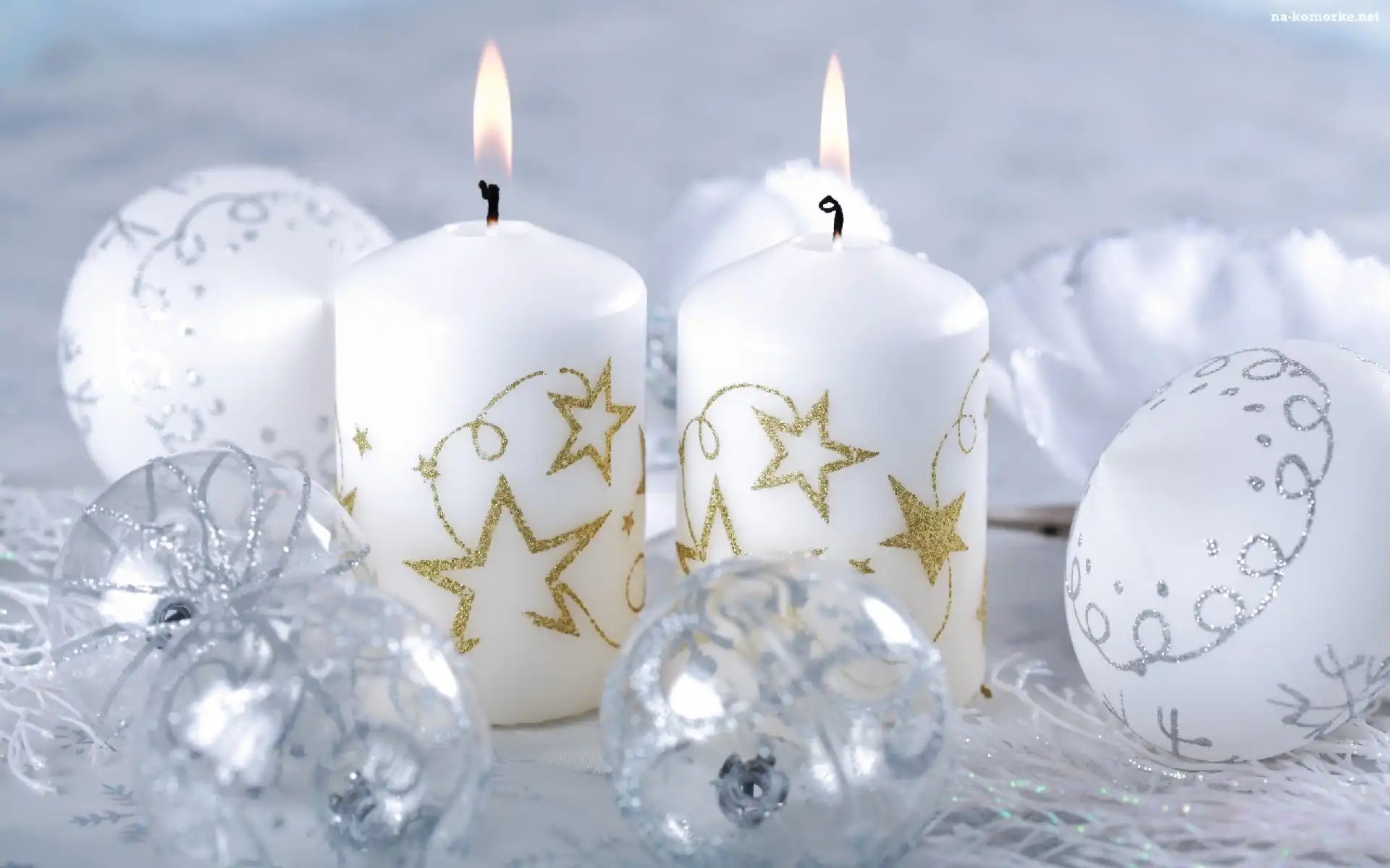 Bombki, Dekoracje, Świąteczne, Białe, Świece na Komórkę
