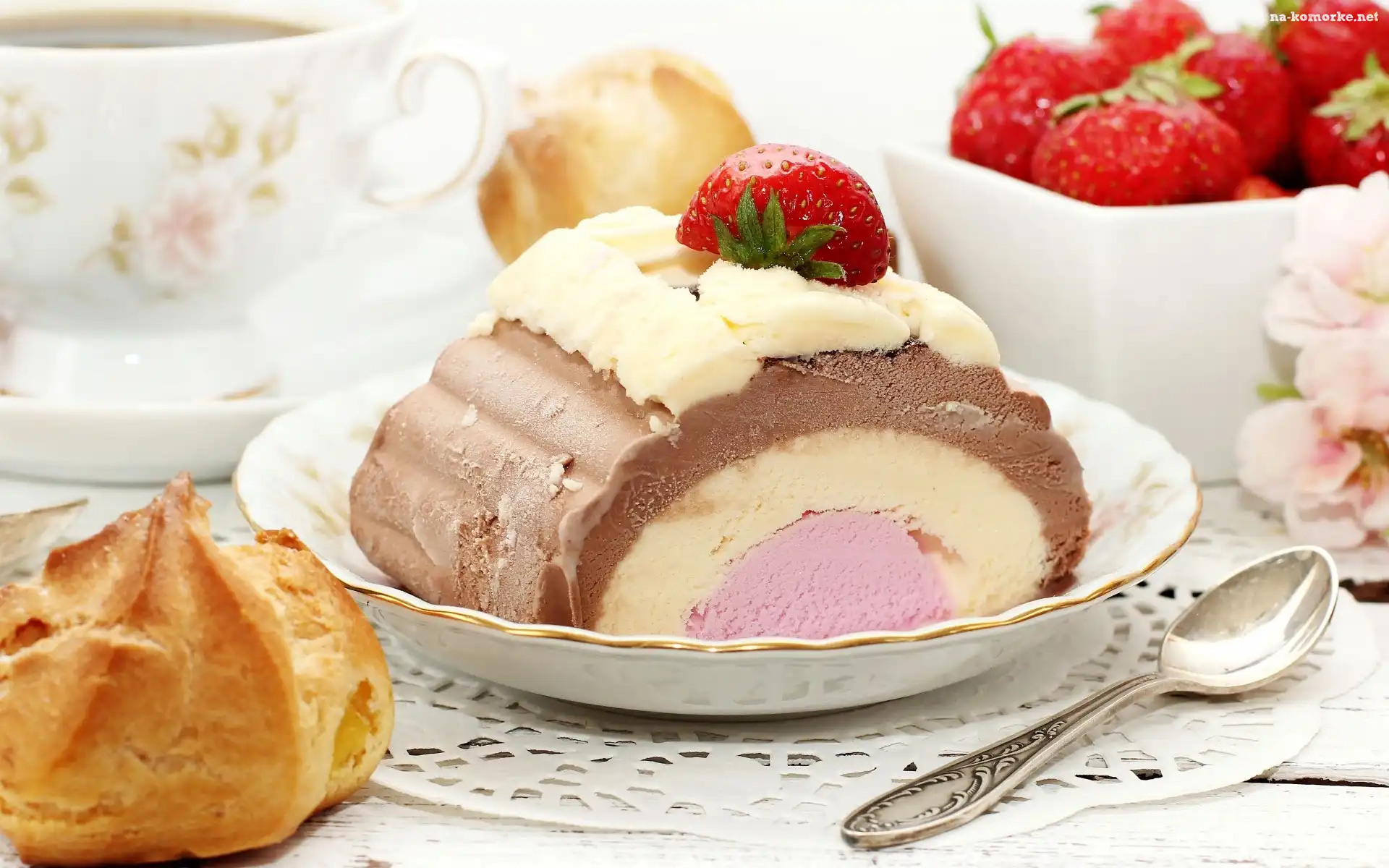 Deser, Lody, Truskawka, Talerz, Łyżeczka na Komórkę