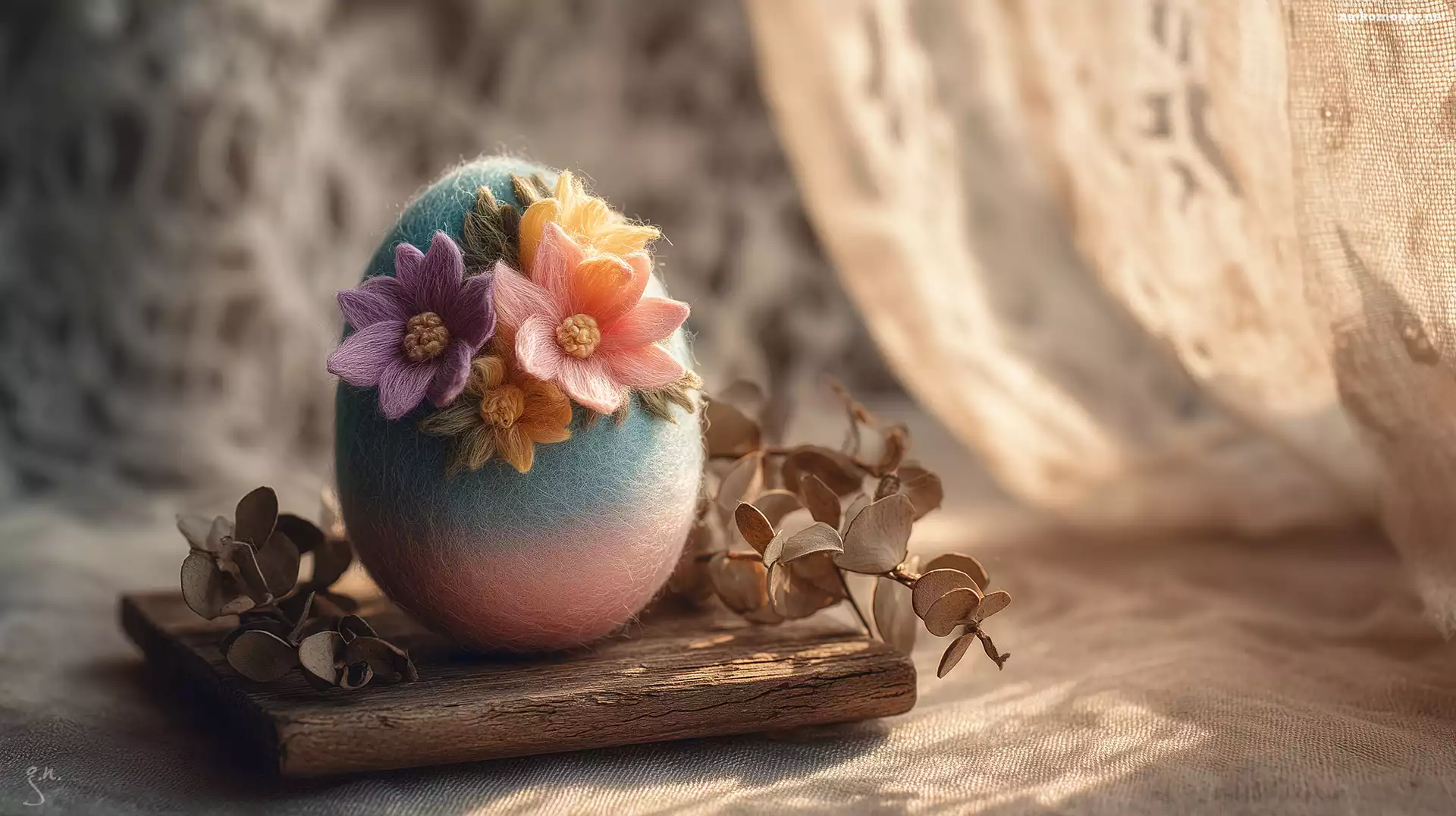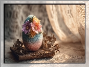 Grafika AI, Jajko, Deska, Wielkanoc, Kwiaty, Kolorowe na Komórkę