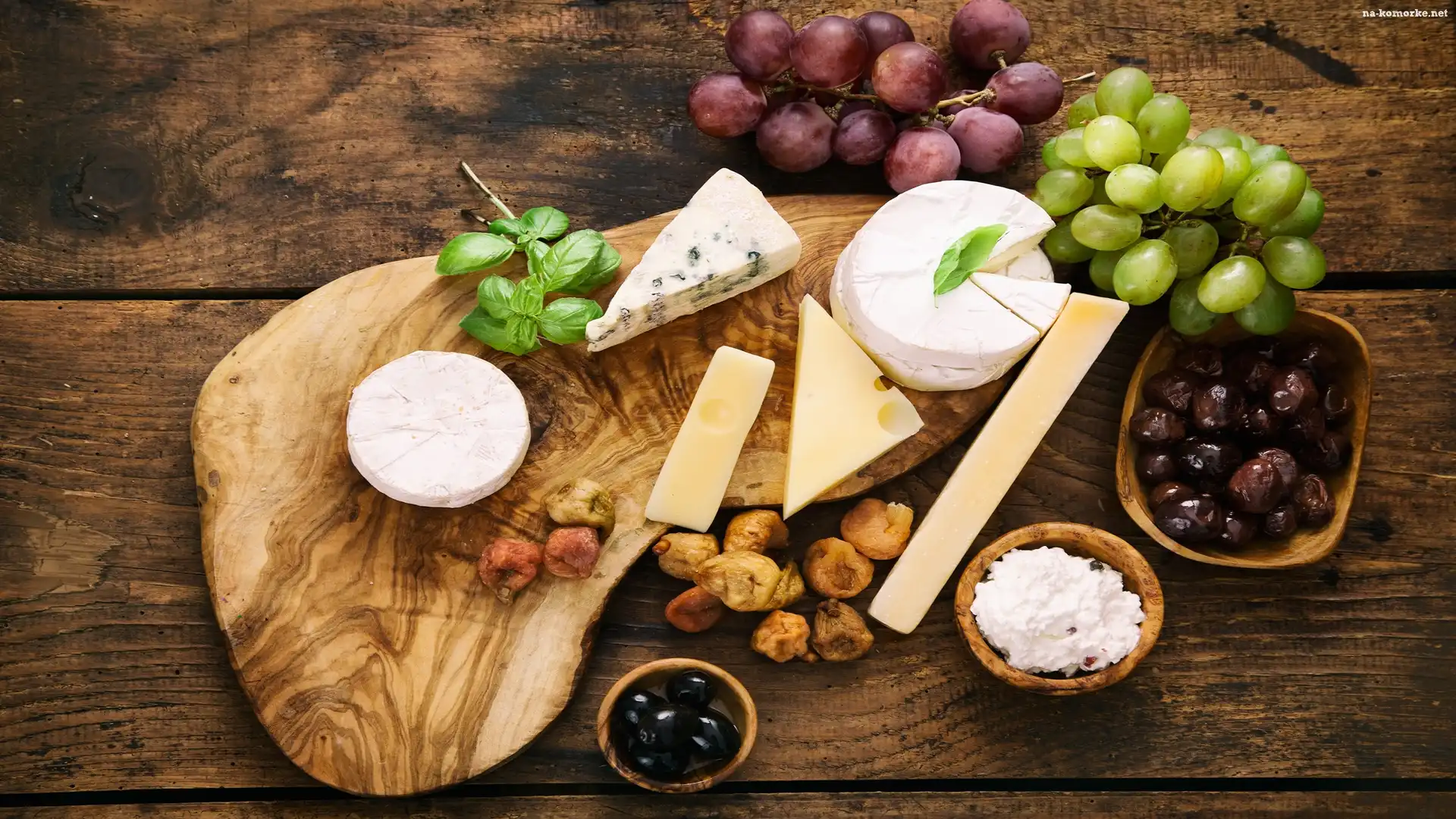 Deska, Kompozycja, Sery, Winogrona, Oliwki na Komórkę