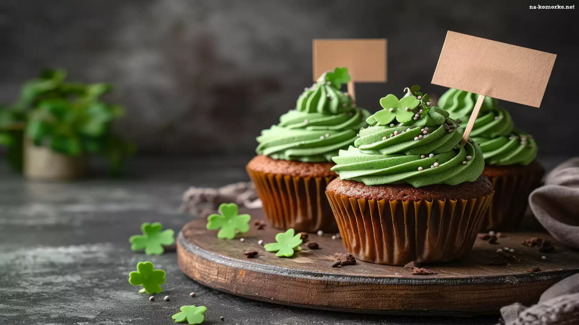 Zielony, Krem, Babeczki, Deska na Komórkę
