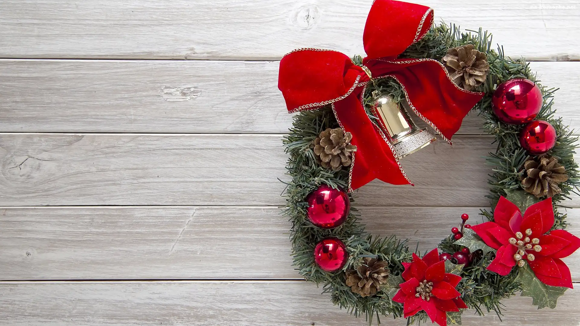 Szyszki, Wieniec, Dzwonek, Gwiazda betlejemska, Dekoracja, Bombki, Świąteczna, Kokarda, Deski na Komórkę |