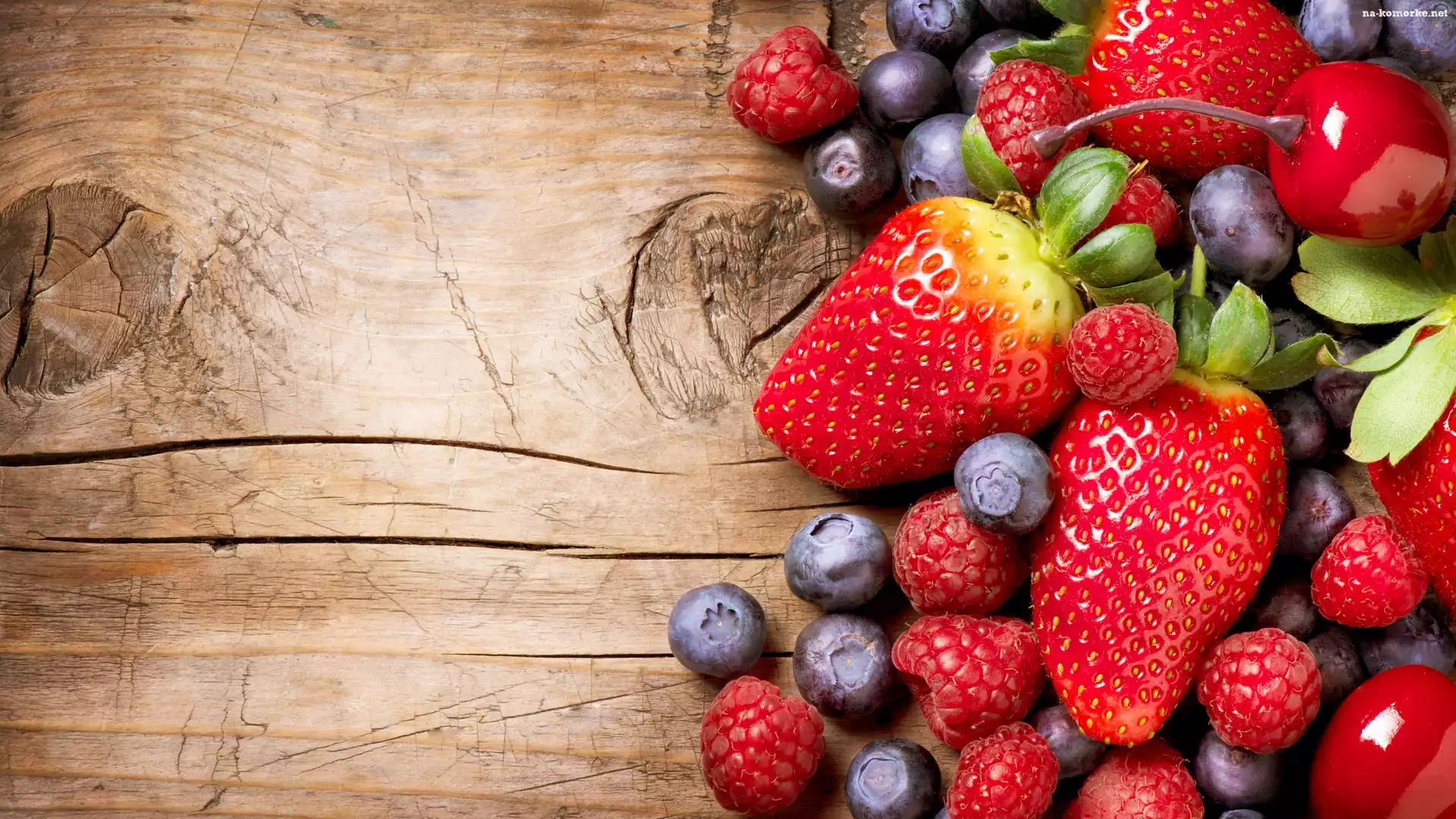 Deski, Owoce, Truskawki, Borówki, Maliny na Komórkę