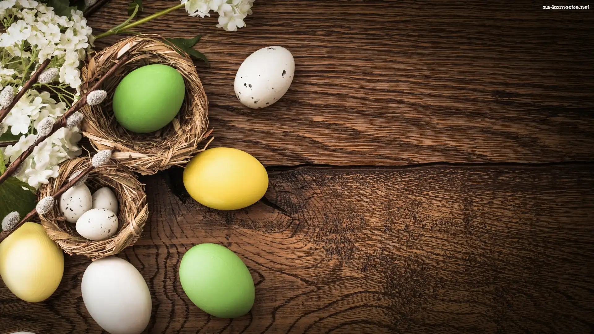 Deski, Wielkanoc, Pisanki, Gniazda, Kwiaty na Komórkę