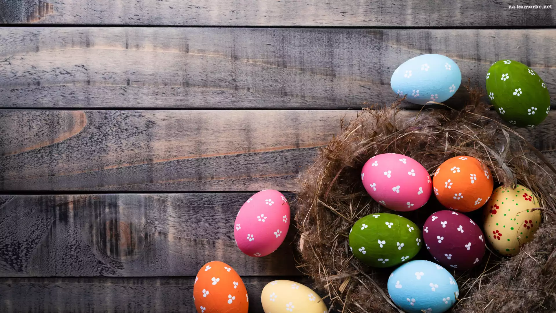Tło, Wielkanoc, Pisanki, Deski, Kolorowe, Gniazdo na Komórkę