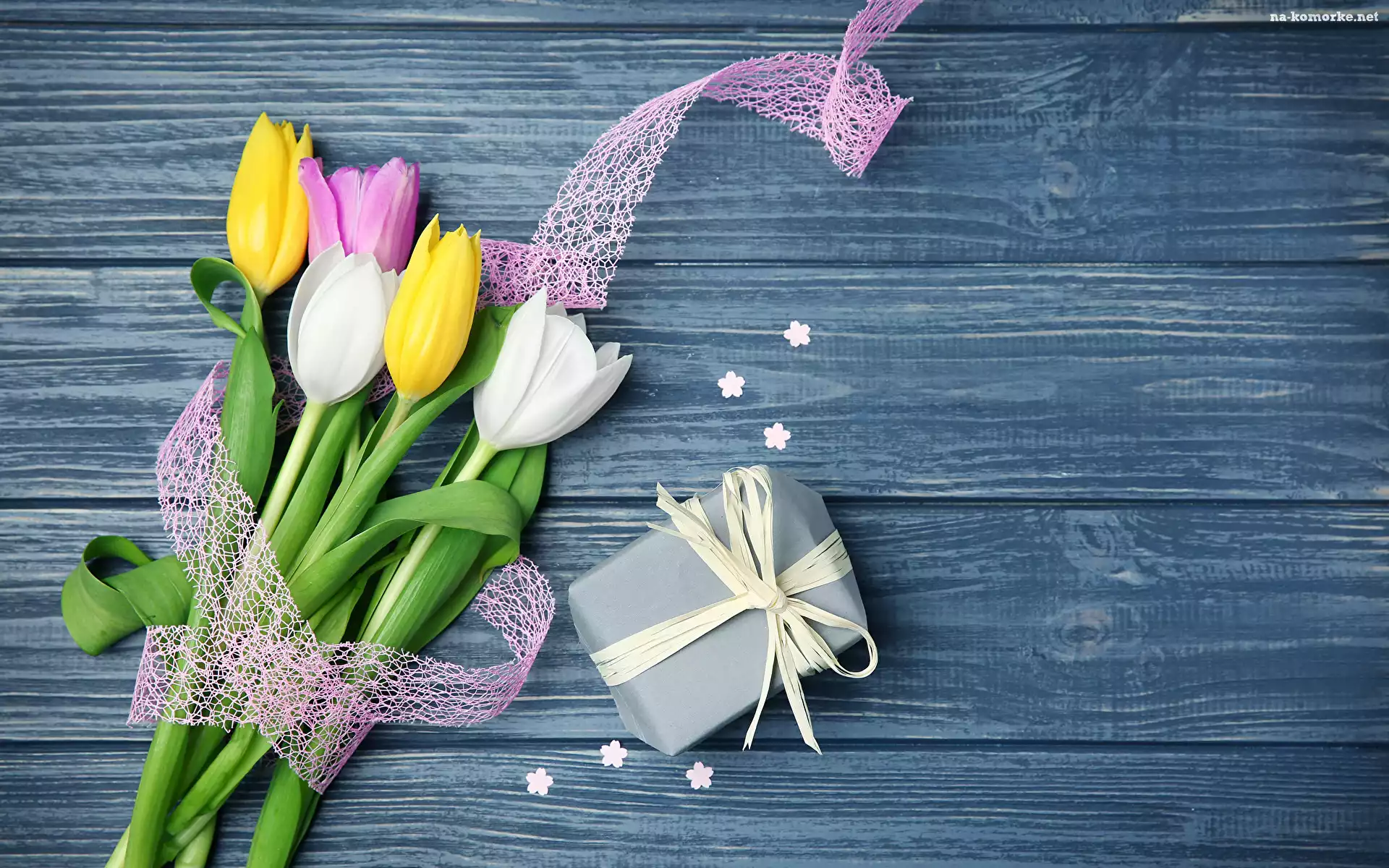 Kokardka, Bukiet, Prezent, Deski, Tulipany, Kolorowe na Komórkę