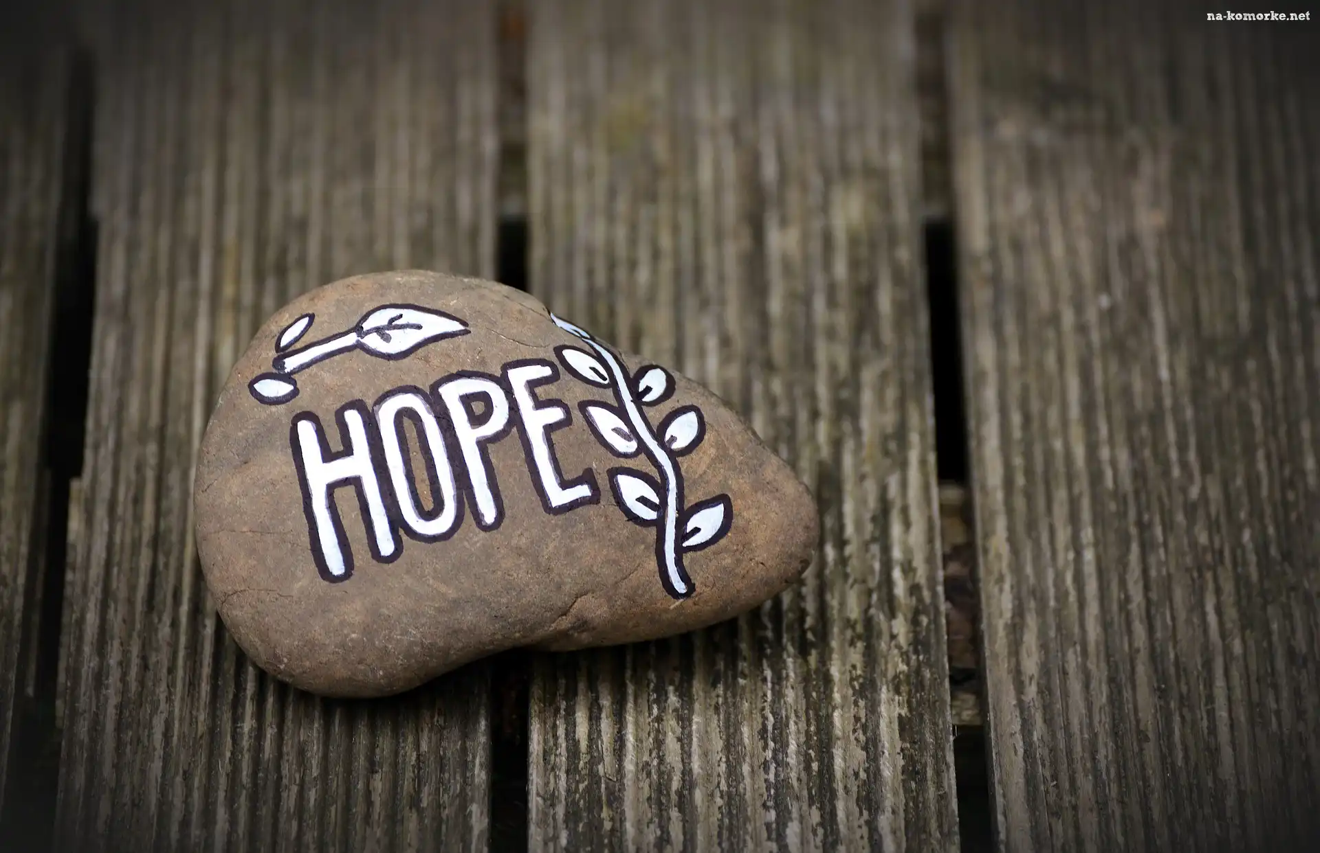 Deski, Kamień, Napis, Nadzieja, Hope na Komórkę
