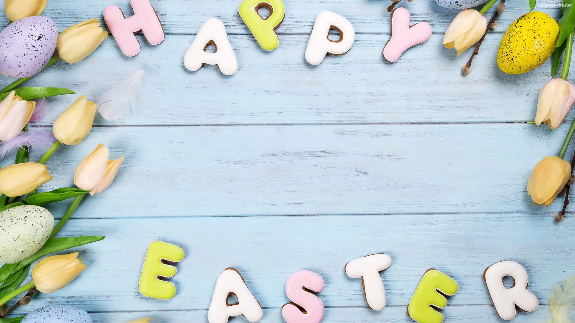 Deski, Wielkanoc, Tulipany, Pisanki, Ciasteczka na Komórkę