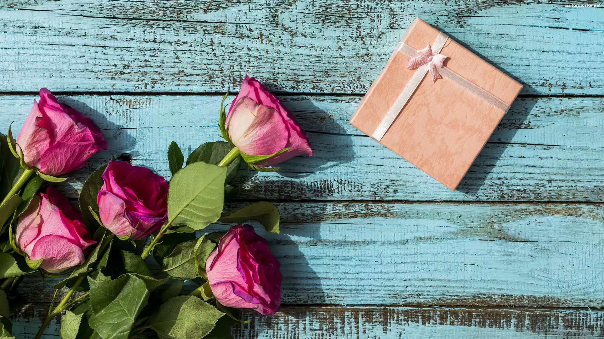 Deski, Różowe, Róże, Prezent, Niebieskie na Komórkę