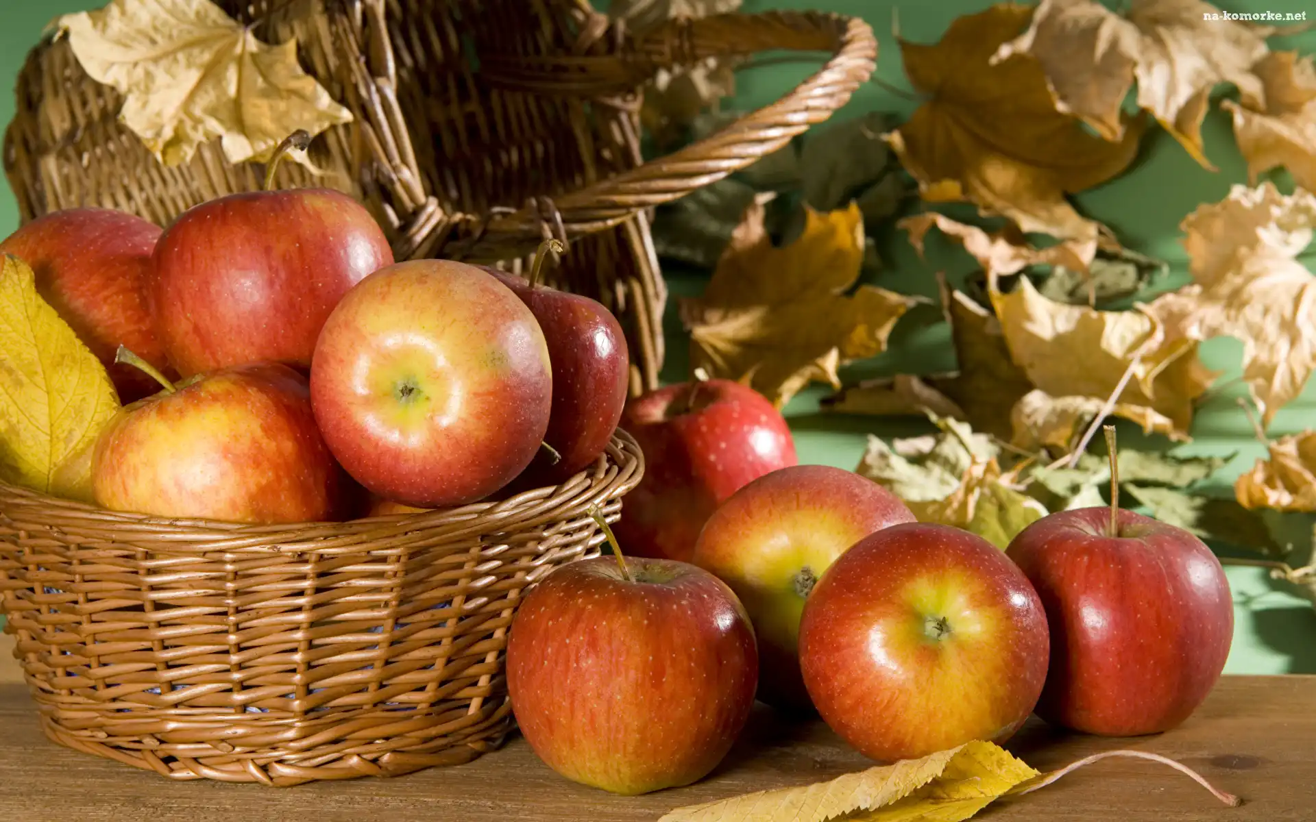 Deski, Jabłka, Koszyki, Suche, Liście na Komórkę