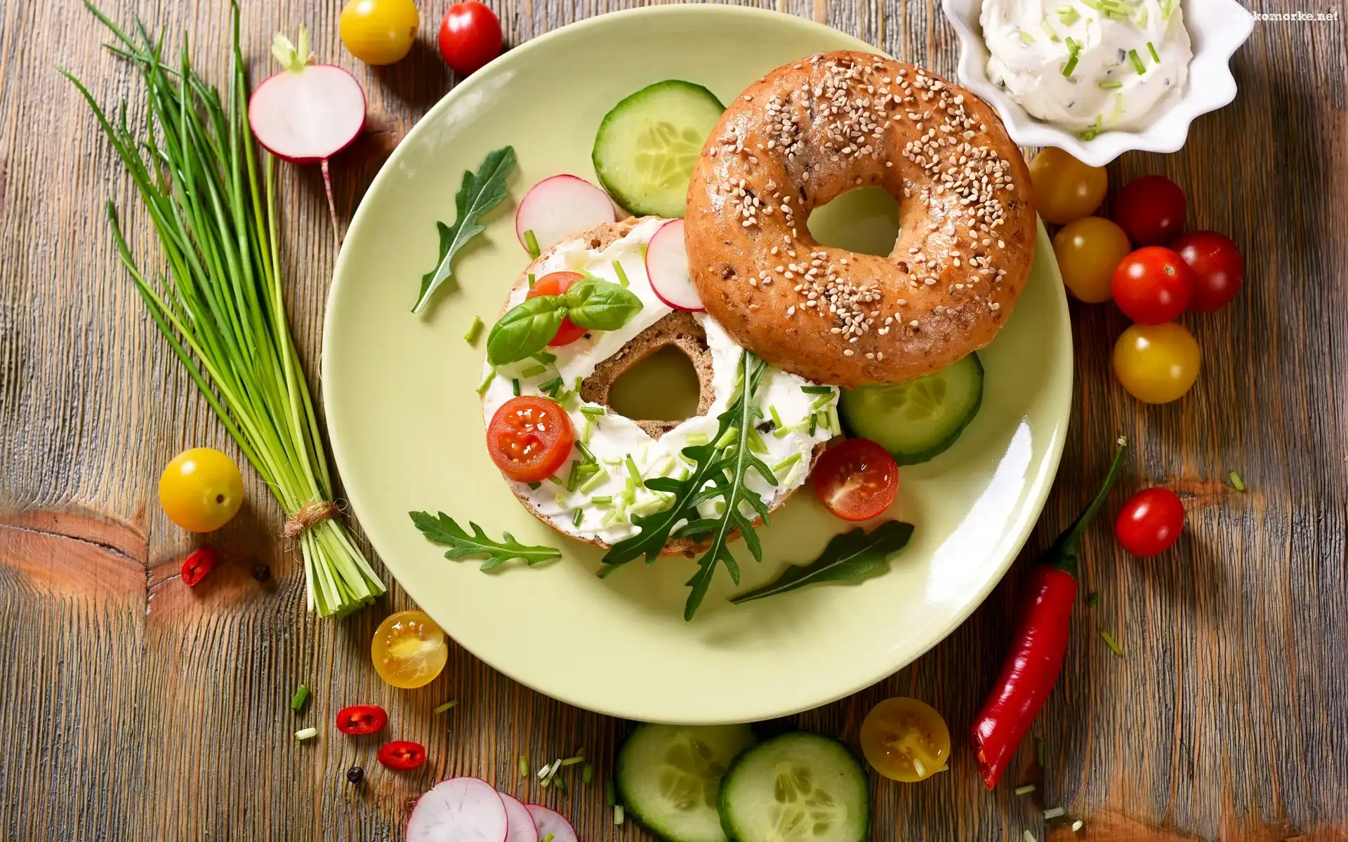Deski, Kanapka, Bułka, Twarożek, Talerzyk, Warzywa na Komórkę