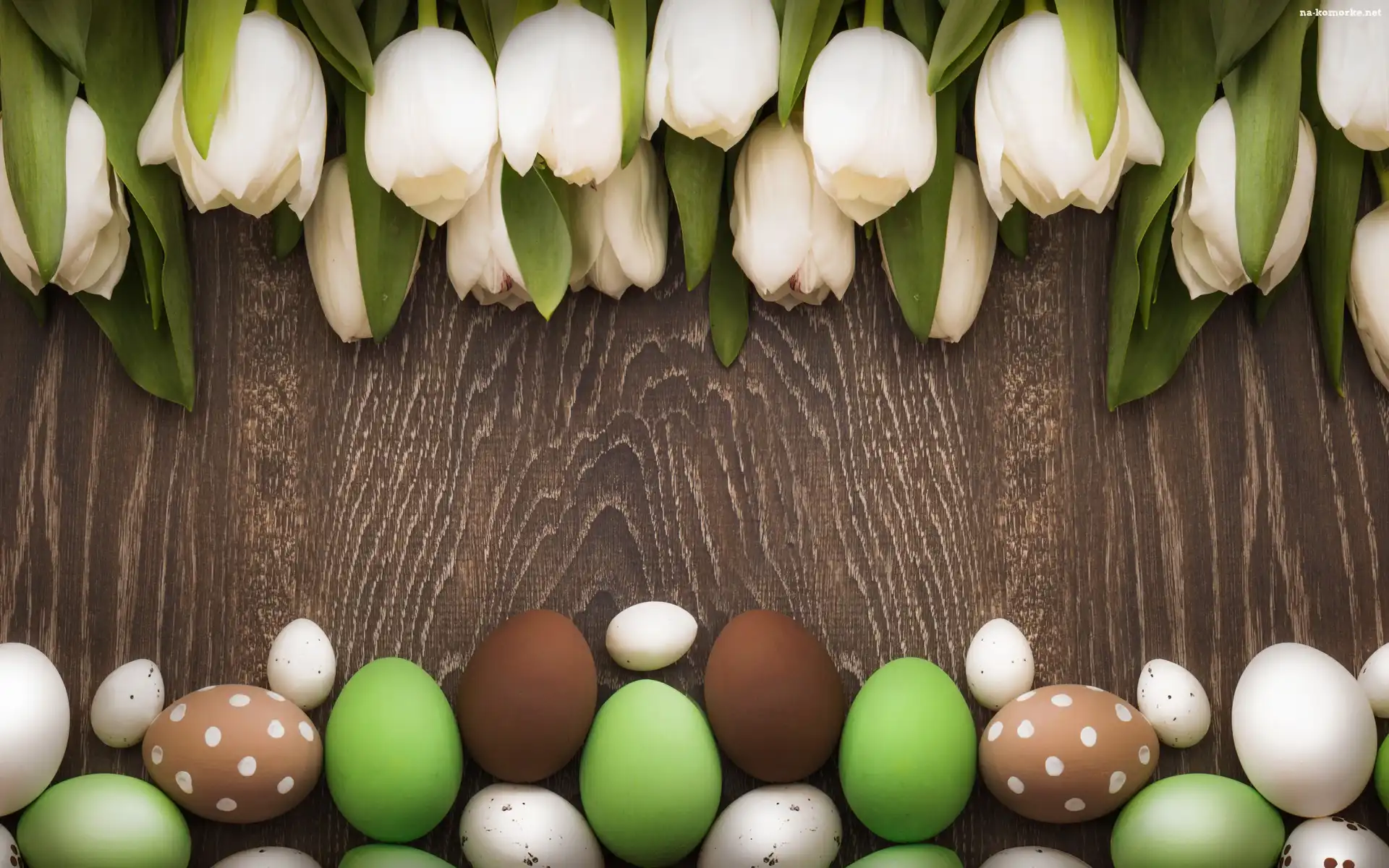 Deski, Wielkanoc, Białe, Tulipany, Pisanki na Komórkę