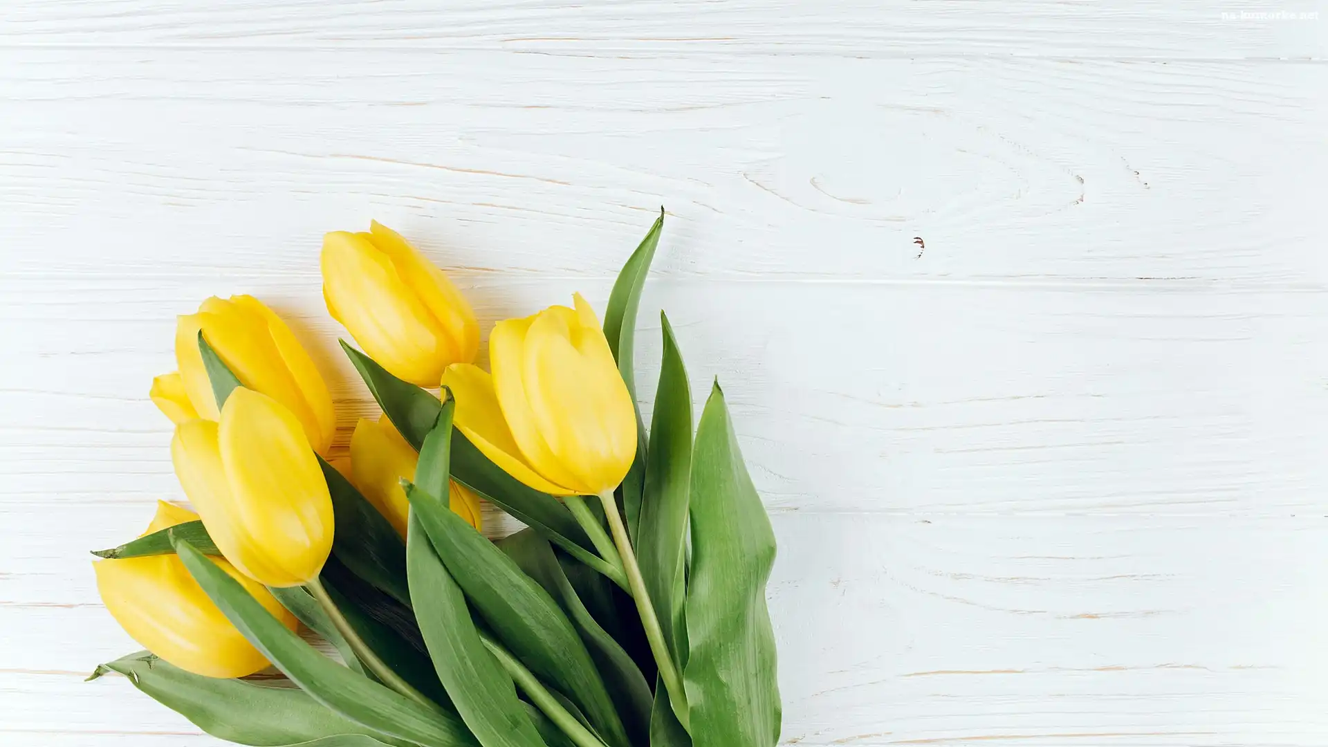 Deski, Kwiaty, Żółte, Tulipany, Białe na Komórkę