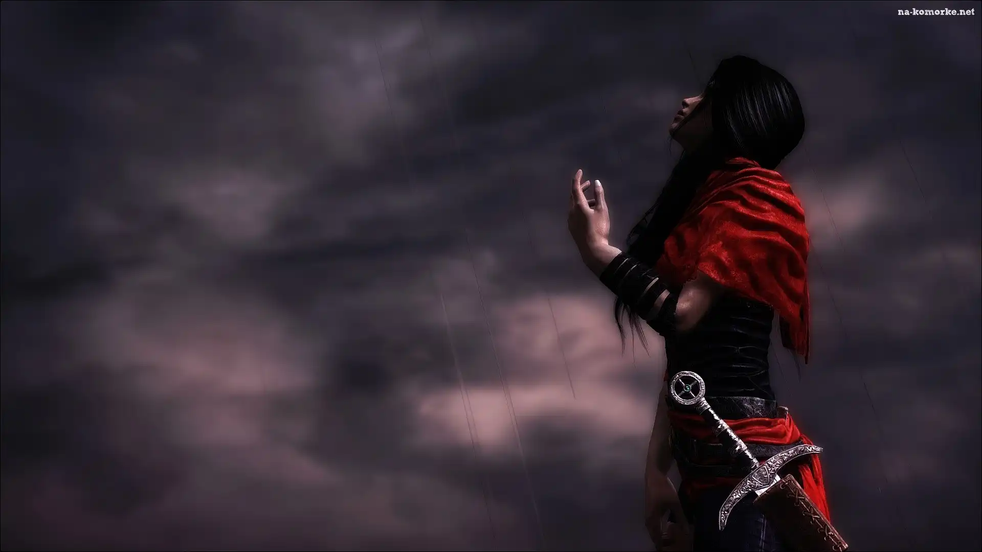 Deszcz, Wojowniczka, Miecz, Ciemne, Chmury na Komórkę