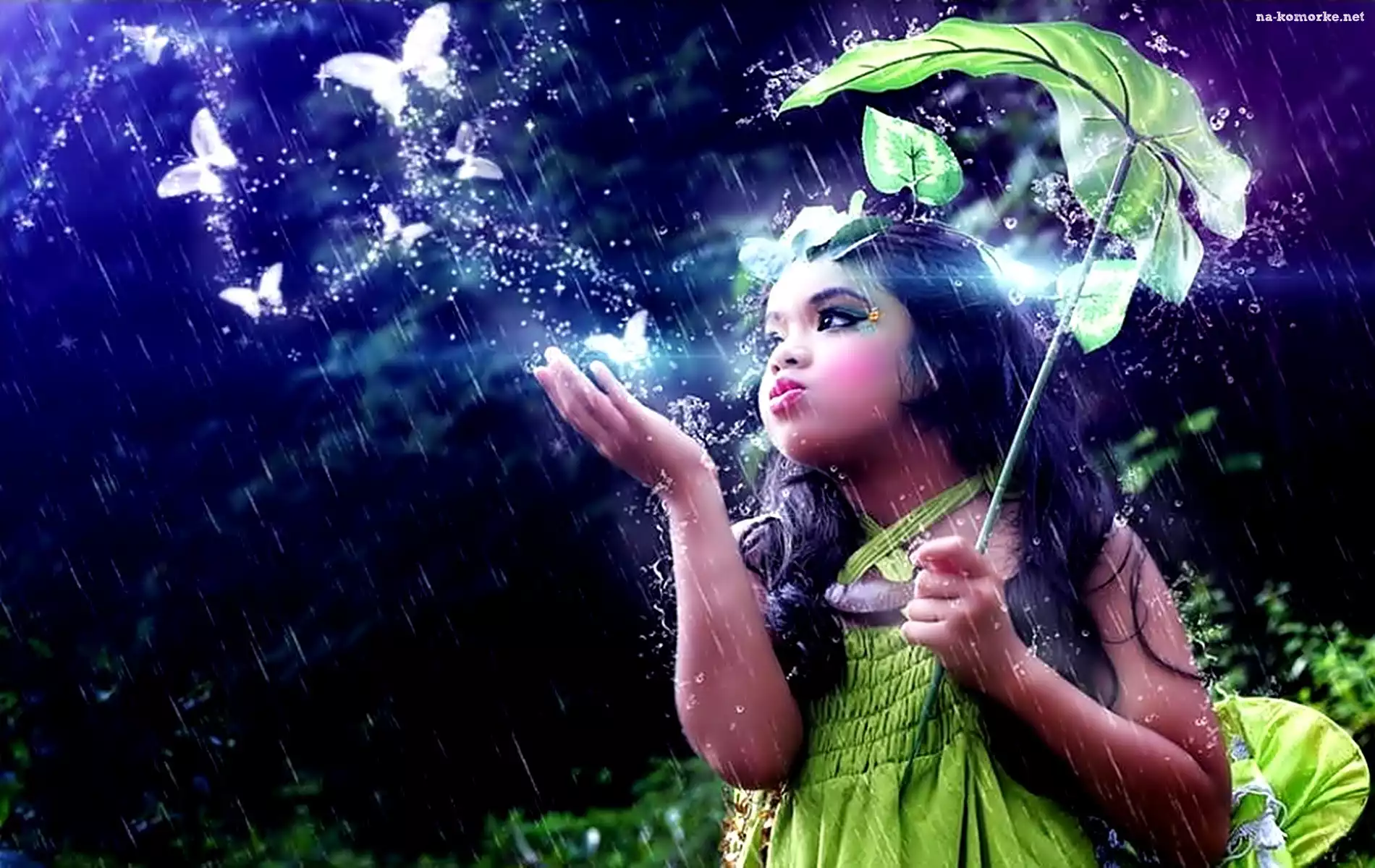 Dziewczynka, Deszcz, Motyle na Komórkę