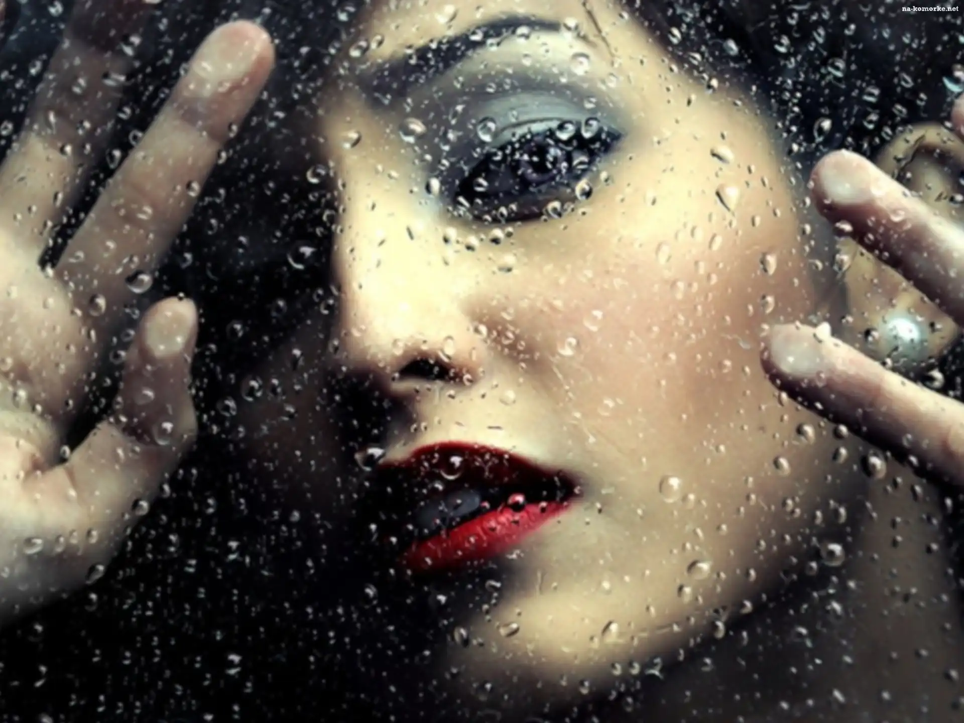 Deszcz, Smutna, Kobieta, Makijaż, Szyba na Komórkę