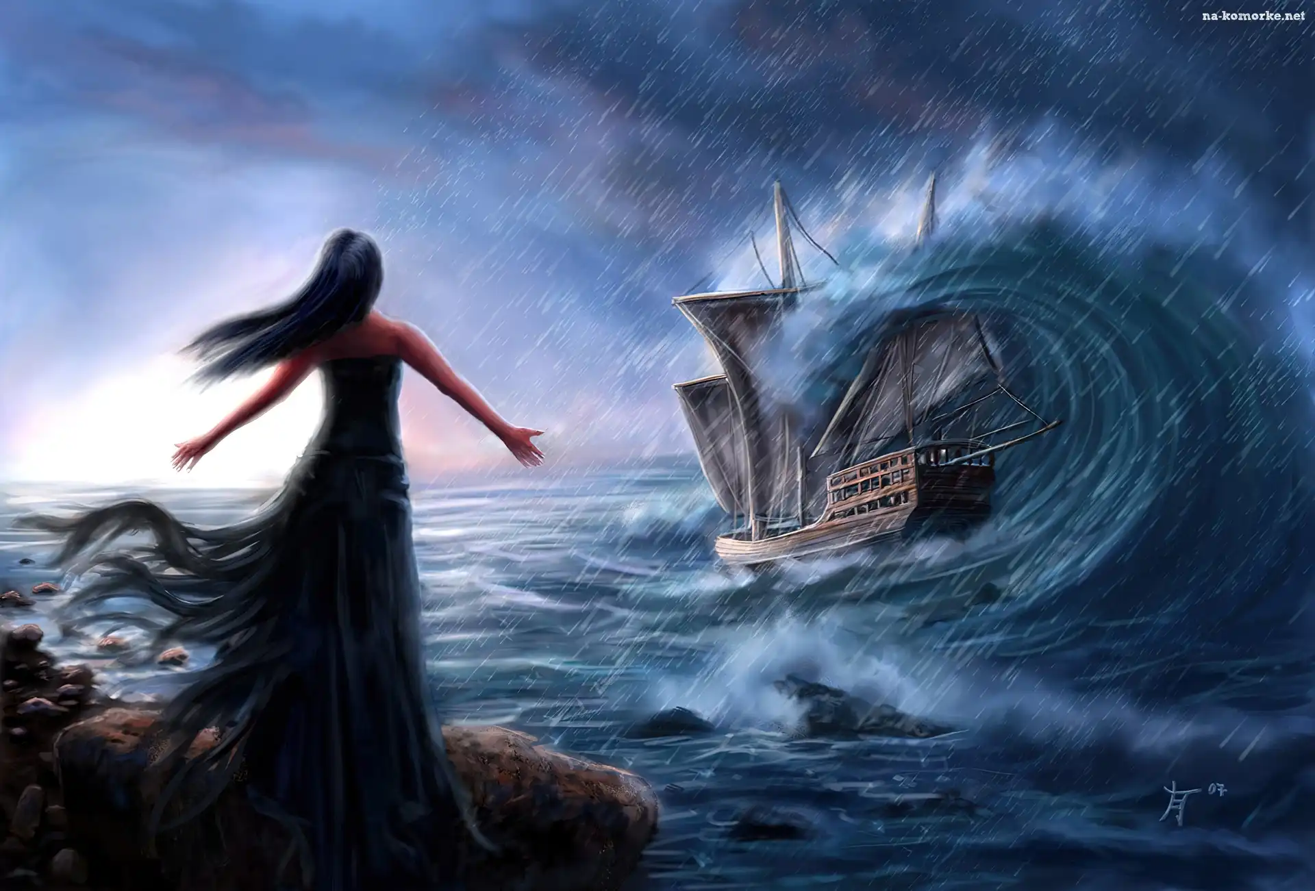 Deszcz, Syrena, Żaglowiec, Morze, Fale na Komórkę