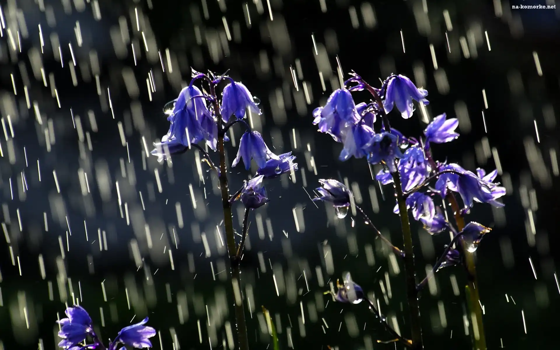 Deszcz, Dzwoneczki, Niebieskie, Kwiatuszki na Komórkę