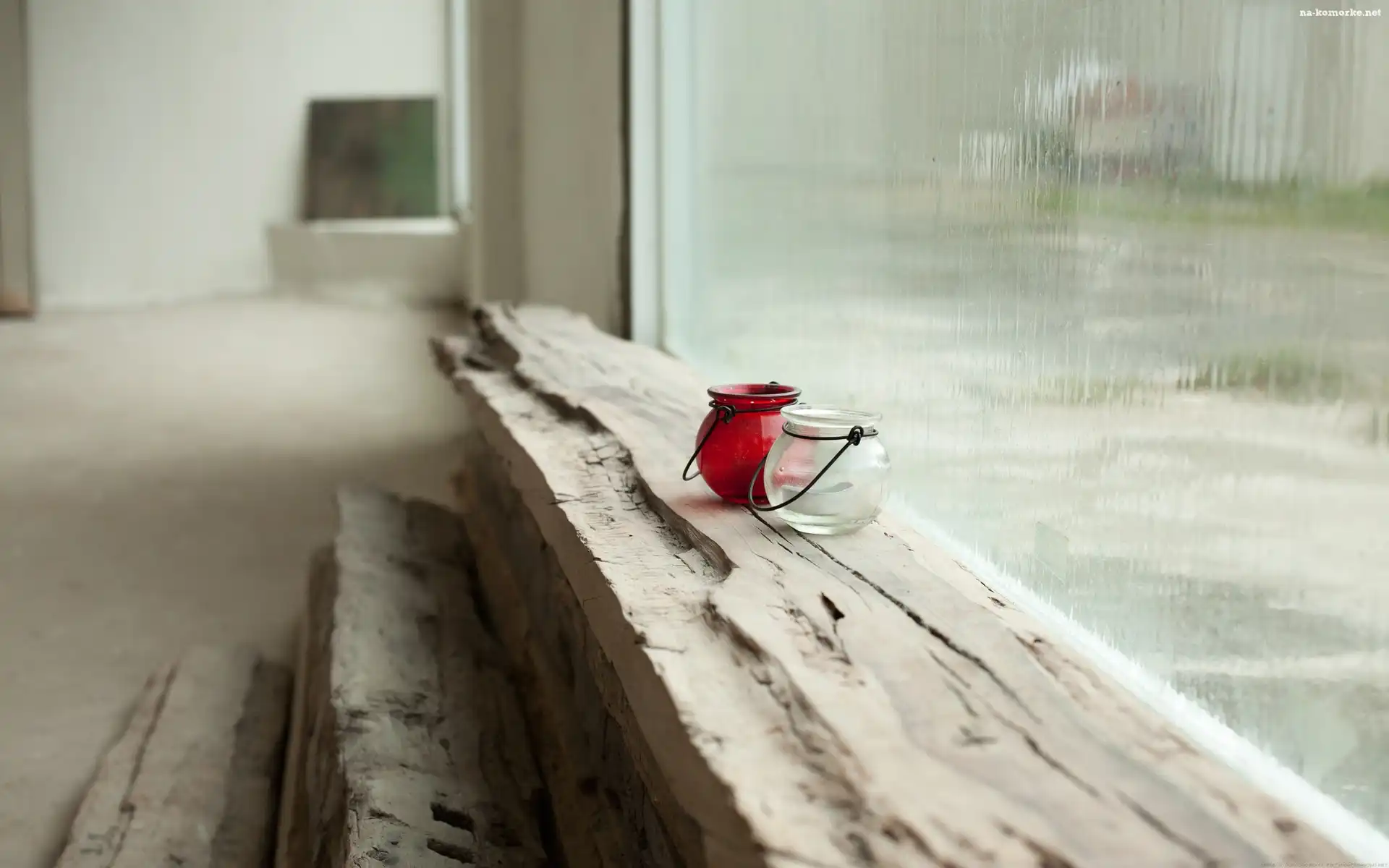 Deszcz, Dekoracja, Szklane Lampiony, Parapet, Okno na Komórkę
