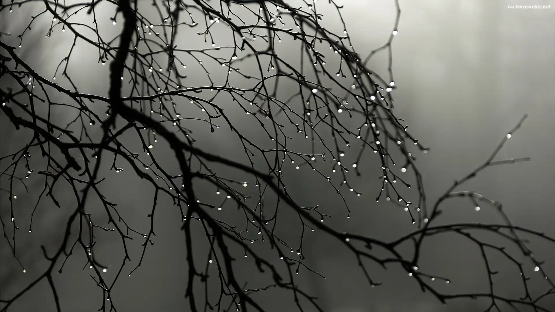 Deszczu, Gałęzie, Drzewa, Mgła, Krople na Komórkę