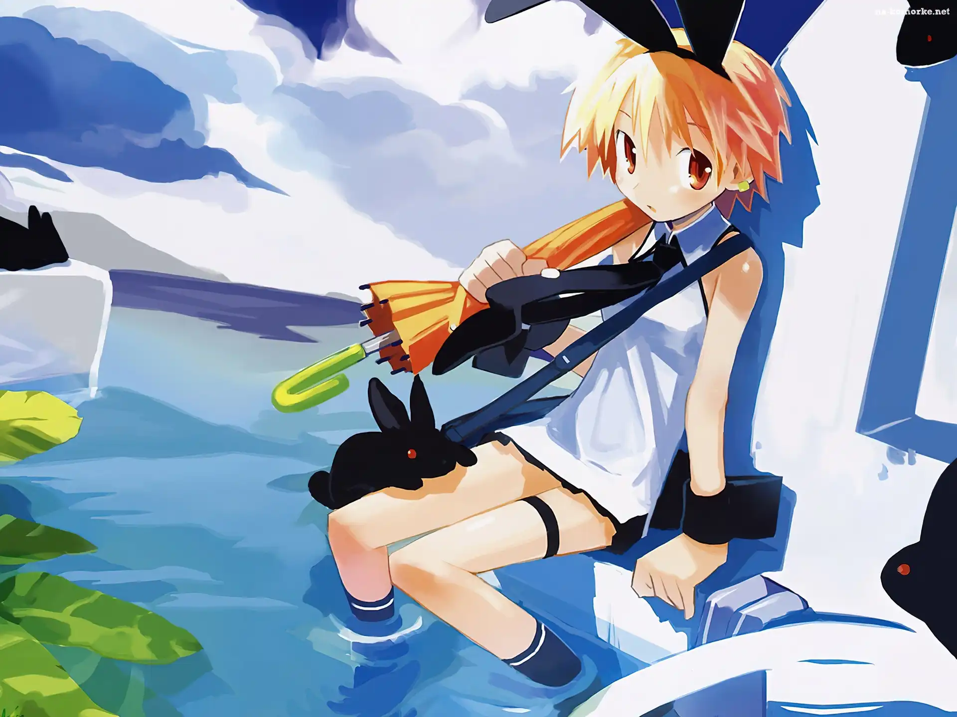 dziewczyna, parasol, Disgaea, woda na Komórkę