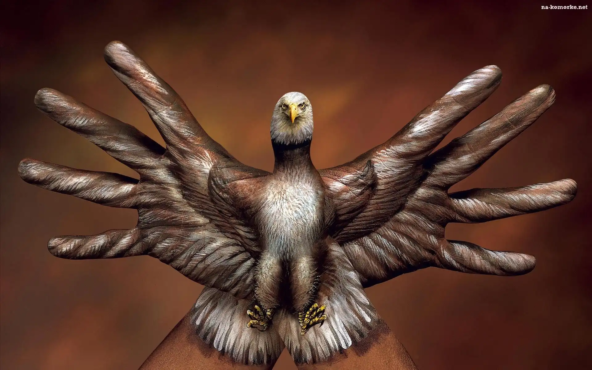 Jastrząb, Dłonie, Bodypainting na Komórkę