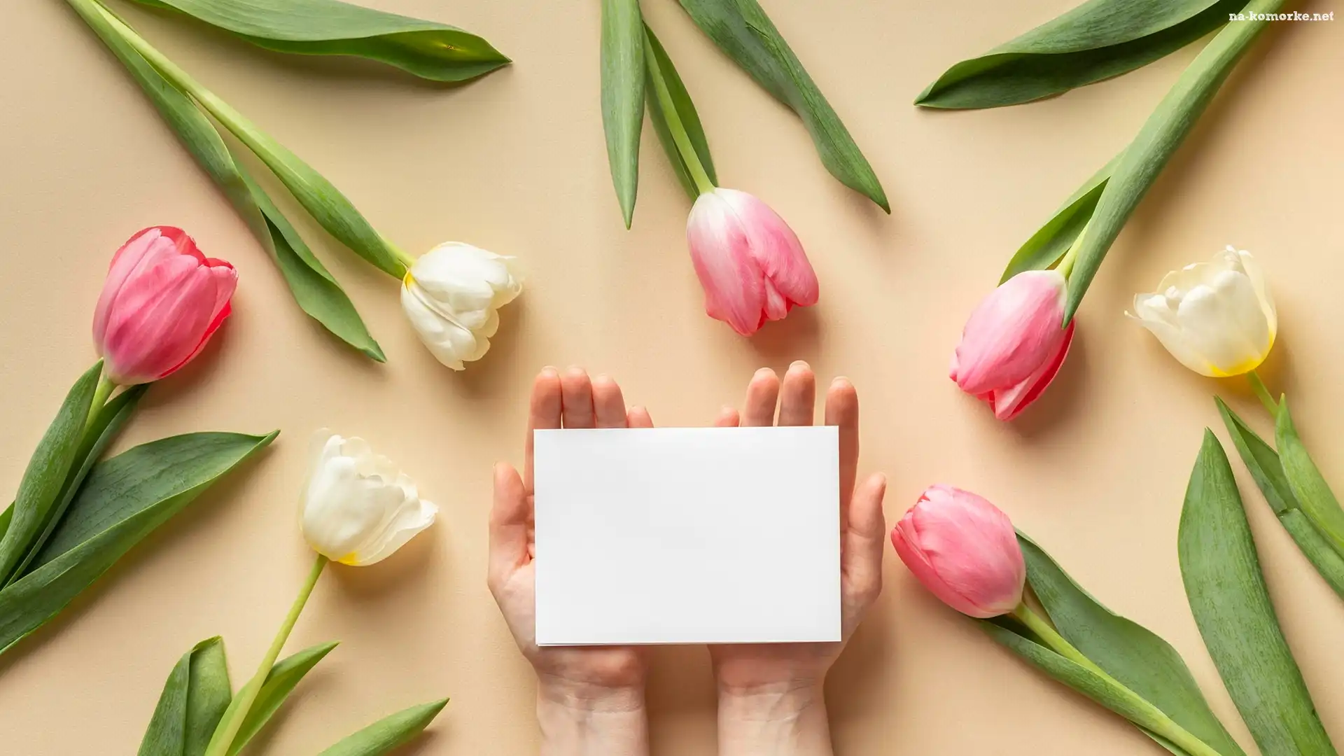 Tulipany, Dłonie, Kartka na Komórkę