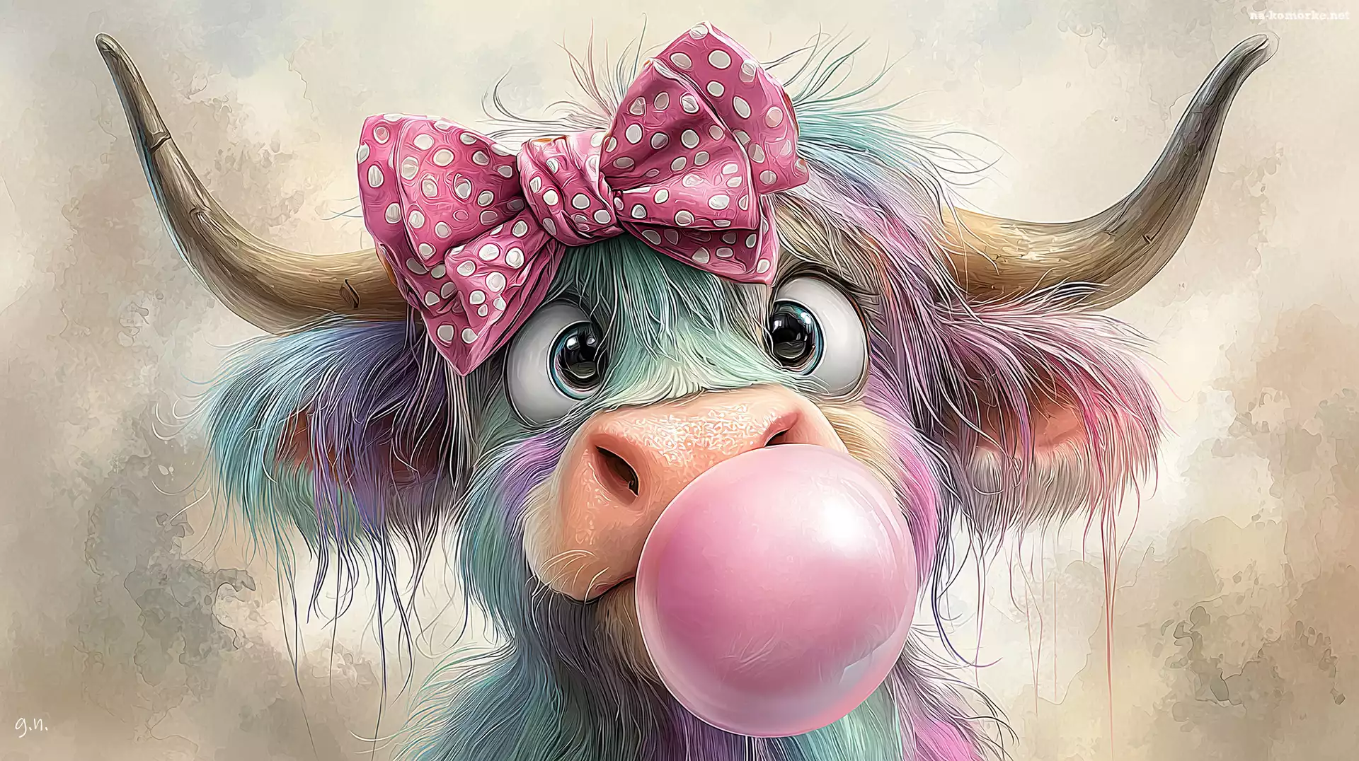 Krowa, Różowa, Kokarda, Długowłosa, Guma do żucia na Komórkę